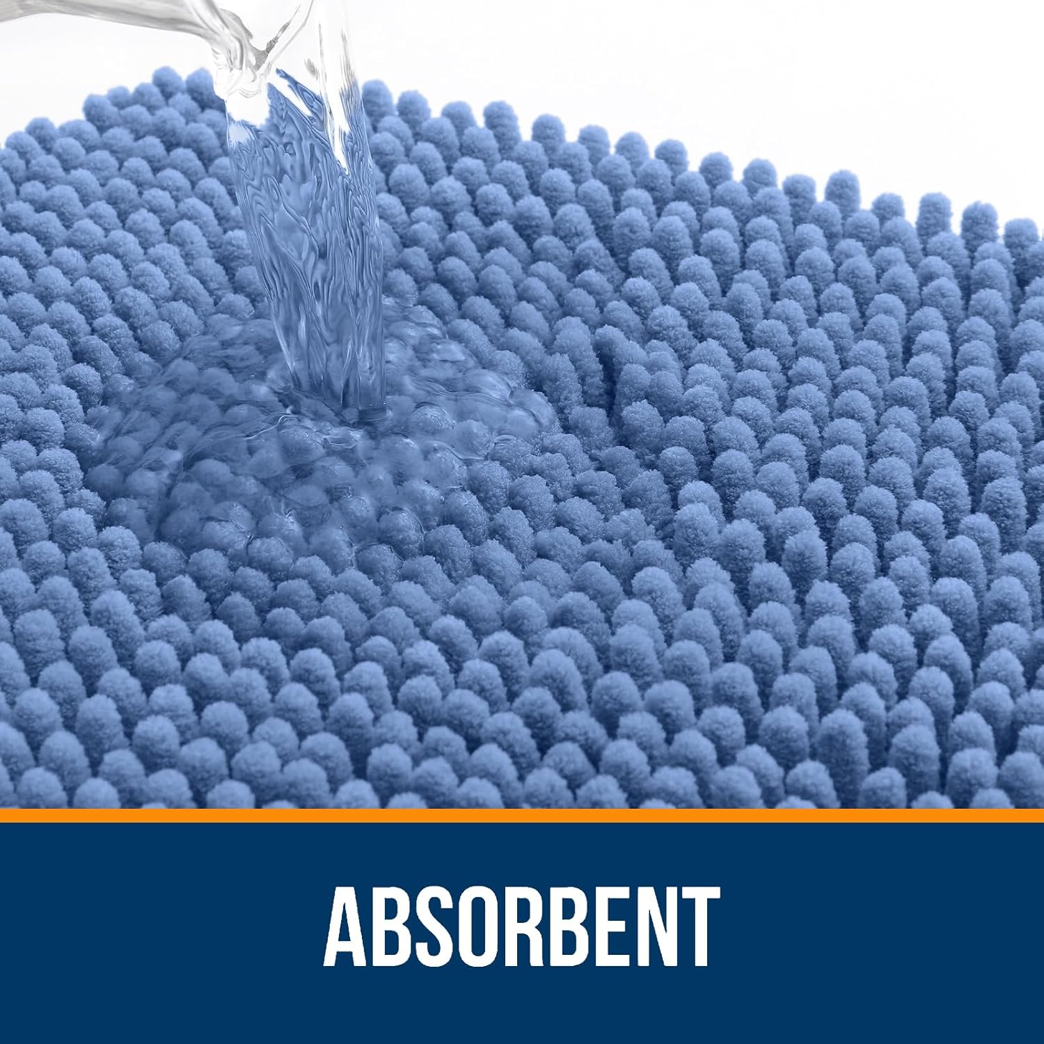 OLANLY Bathroom Rugs 24x16, Extra Soft Absorbent Chenille Bath Rugs, Rubber Backing Quick Dry, Machine Washable Bath Mats for Bathroom Floor, Tub and Shower, Home Decor Accessories, Cornflower Blue