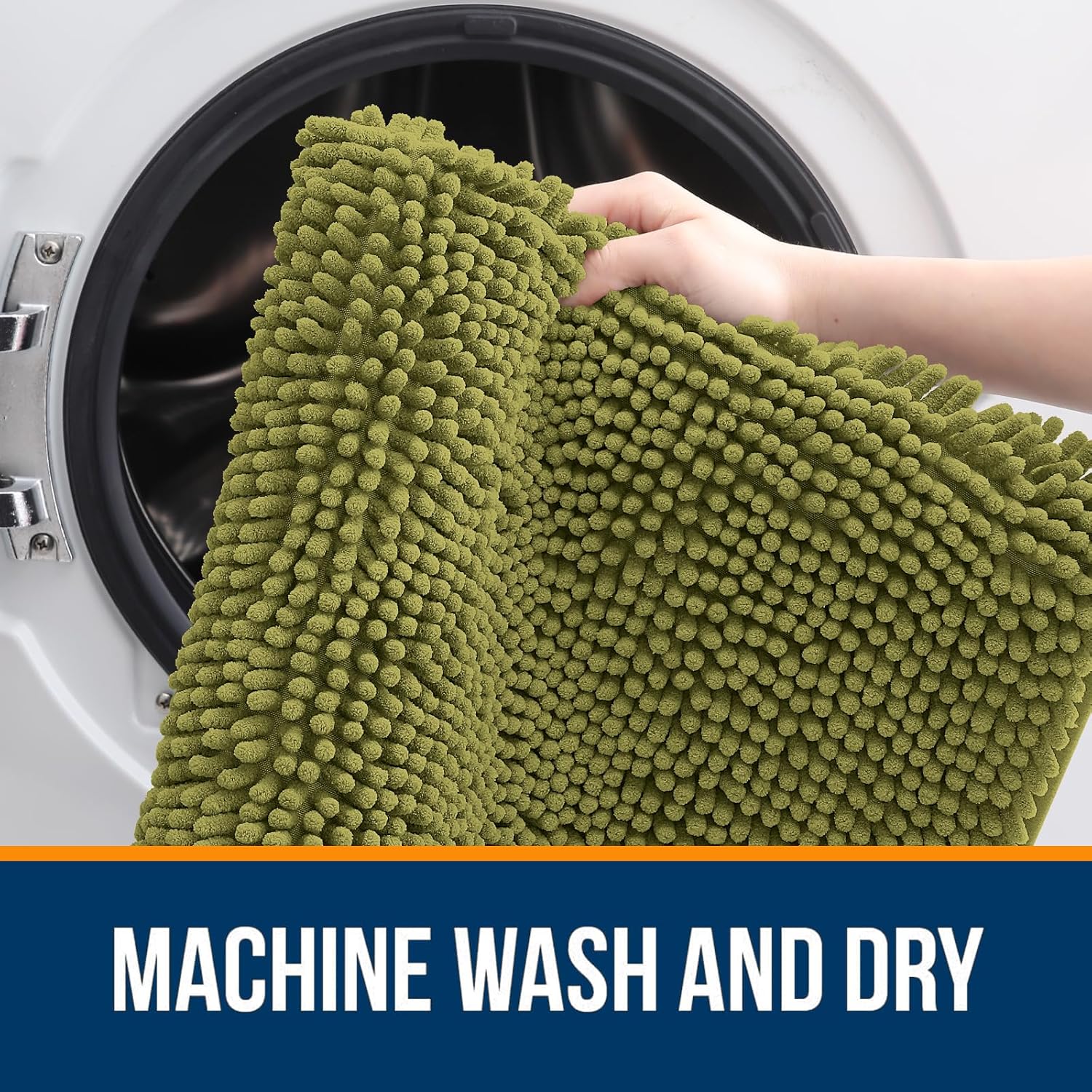 OLANLY Bathroom Rugs 30x20, Extra Soft Absorbent Chenille Bath Rugs, Rubber Backing Quick Dry, Machine Washable Bath Mats for Bathroom Floor, Tub and Shower, Home Decor Accessories, Willow Green