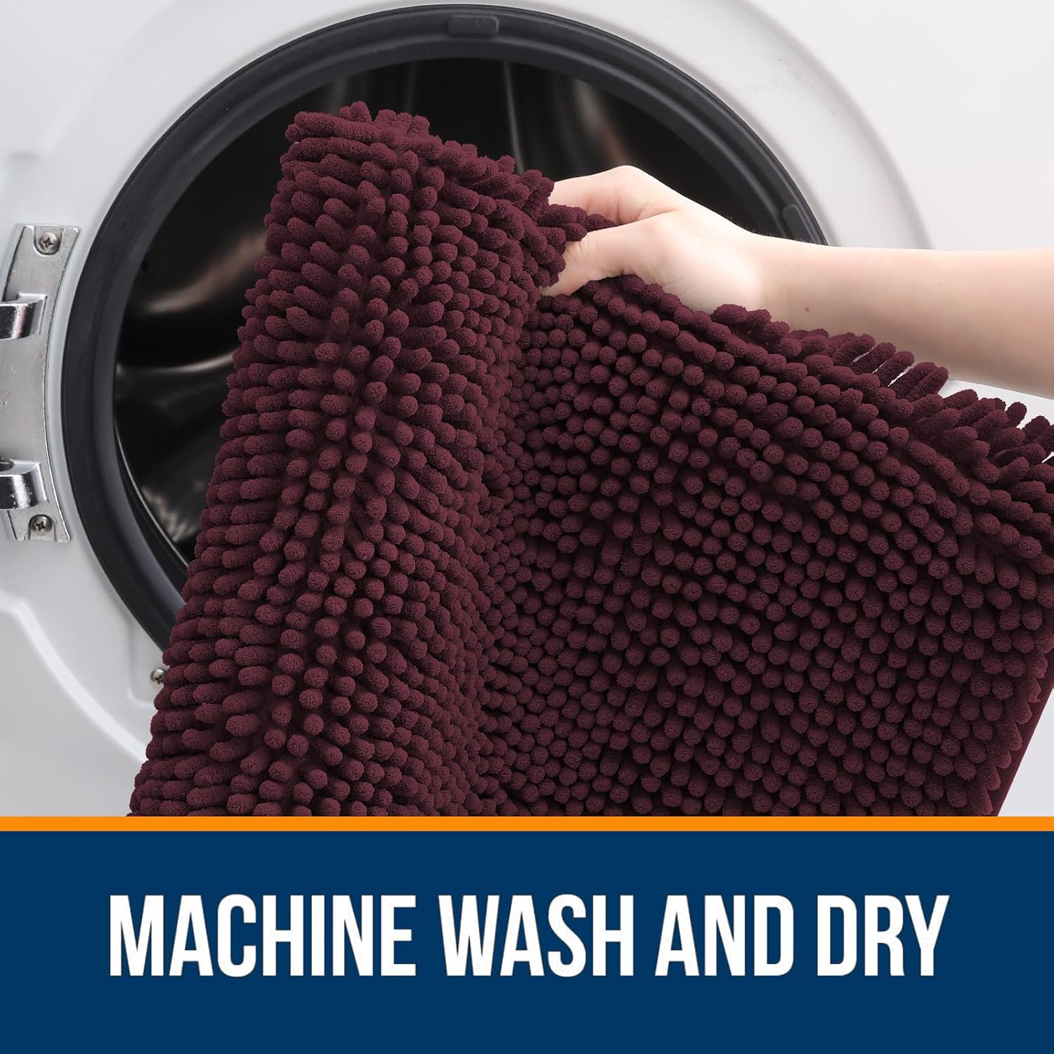 OLANLY Bathroom Rugs 24x16, Extra Soft Absorbent Chenille Bath Rugs, Rubber Backing Quick Dry, Machine Washable Bath Mats for Bathroom Floor, Tub and Shower, Home Decor Accessories, Black Cherry