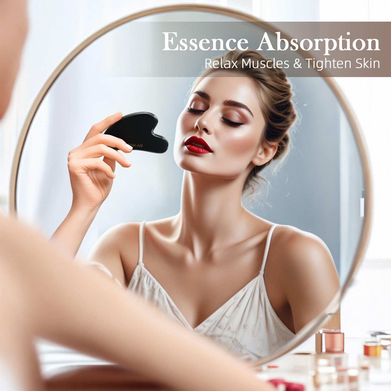- Energizing Skincare: The guasha stone is a nice tool for facial massage. It can relax your facial tissue and awaken facial skin, help your skin absorb your skin absorb the cream or lotion faster and more fully