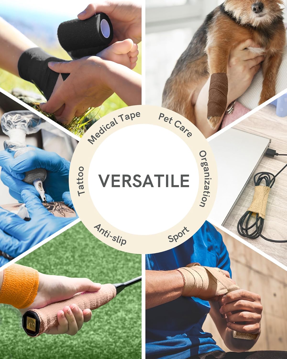 - SELF-ADHESIVE DESIGN - These elastic bandages are far better than the non-adhesive ones as they have self-adhering ability but not adhere to other surface such as hair/ clothing. It is very easy to pull off and perfect for playful children!