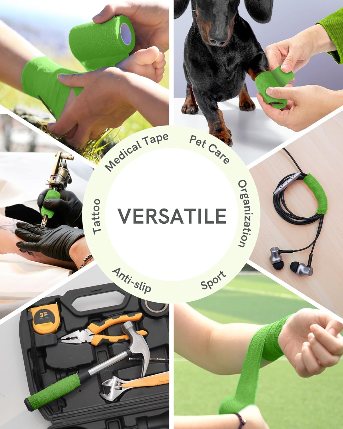 FriCARE Self Adhesive Bandage Wrap, Medical Tape in First Aid Kit, Cohesive Bandages for Wounds Sport Vet, 2 Inches X 5 Yards 6 Rolls, Emerald Green