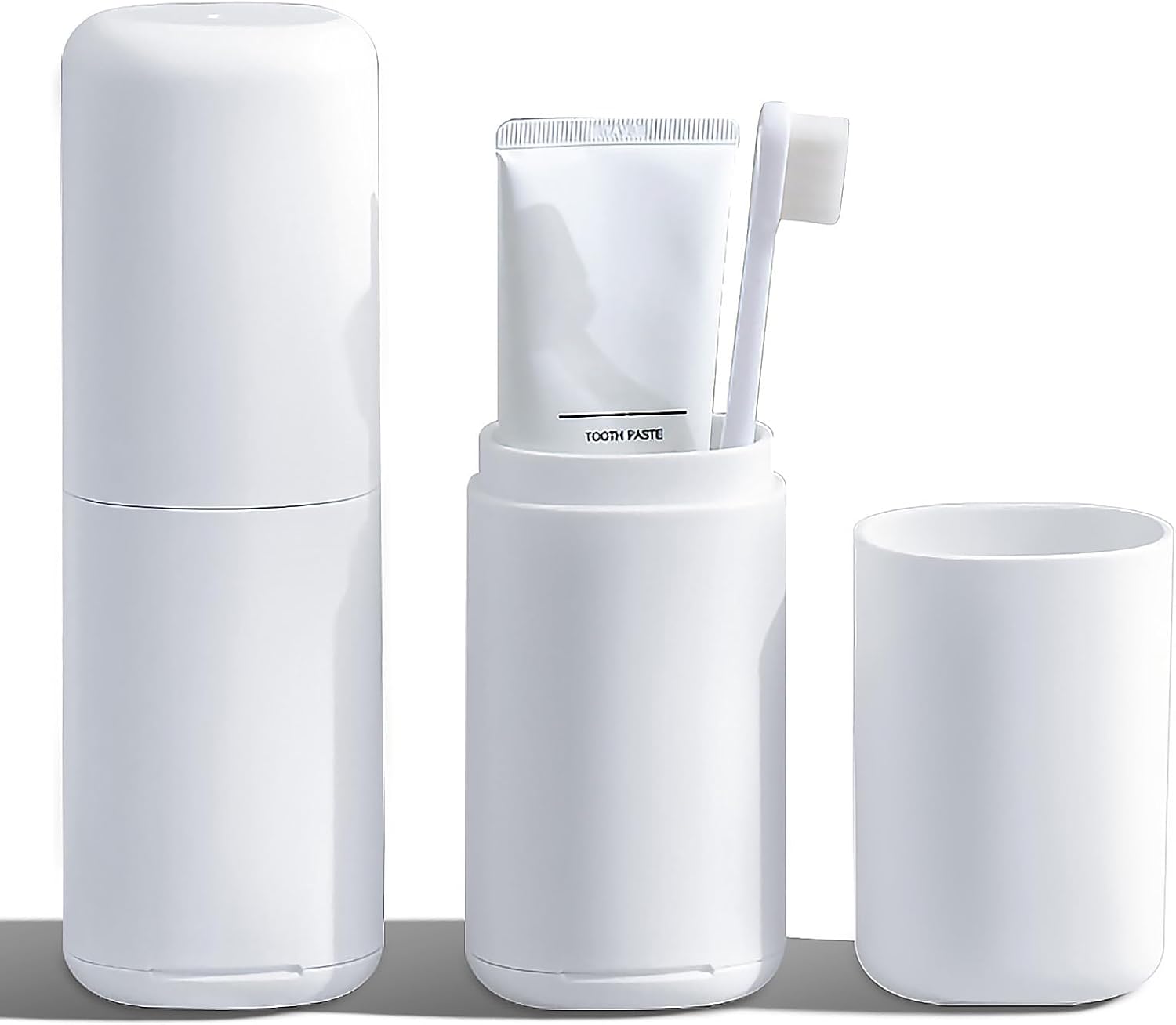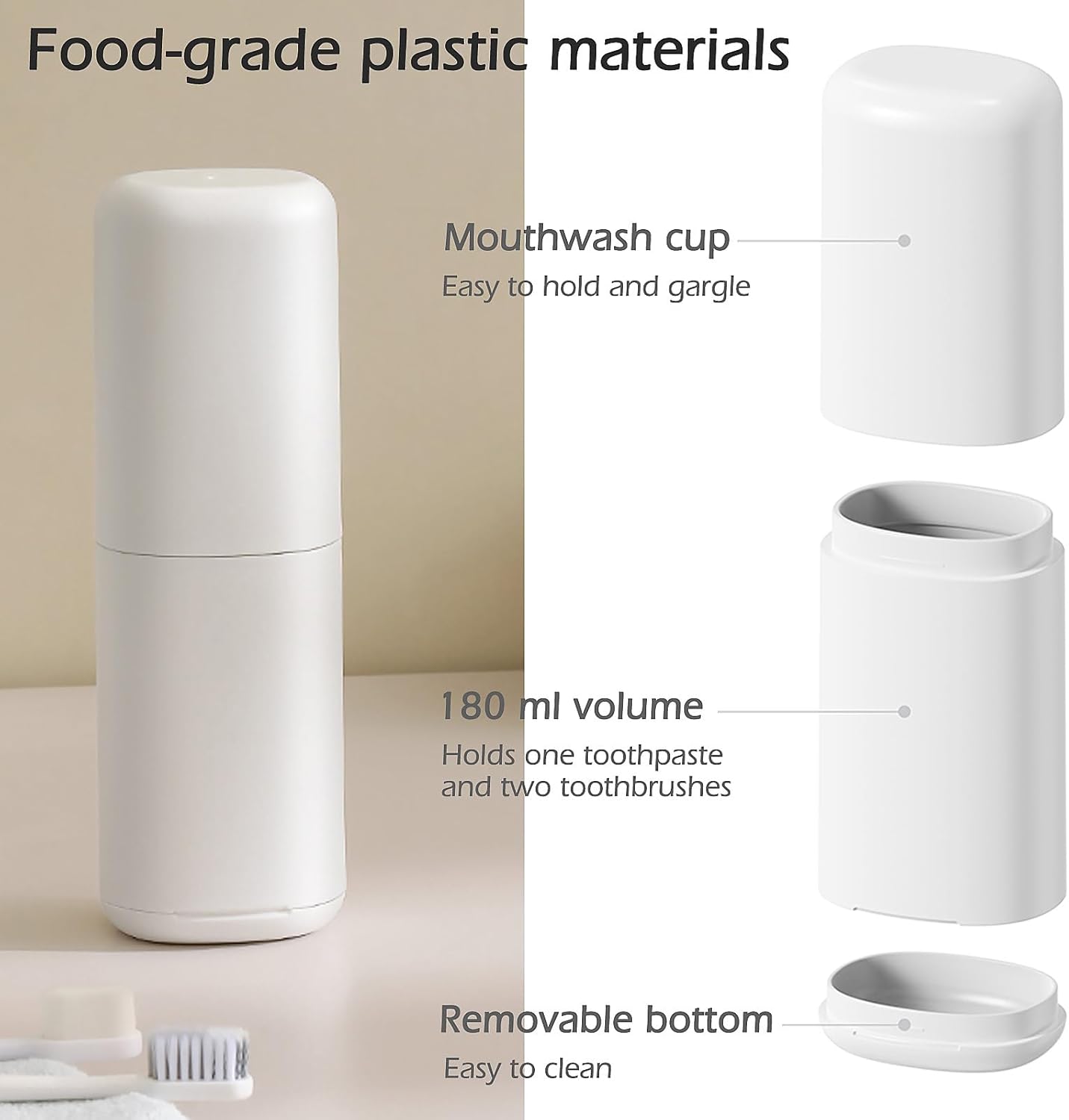 - MULTIFUNCTIONAL AND PRACTICAL: This travel toothbrush holder has a novel design, which consists of a lid, a storage cup and a removable bottom lid in a three-part design. The lid can be used as a water cup, the organizer cup has plenty of capacity, and the bottom lid is removable for easy cleaning. Convenient for carrying your toothbrush, toothpaste and other supplies