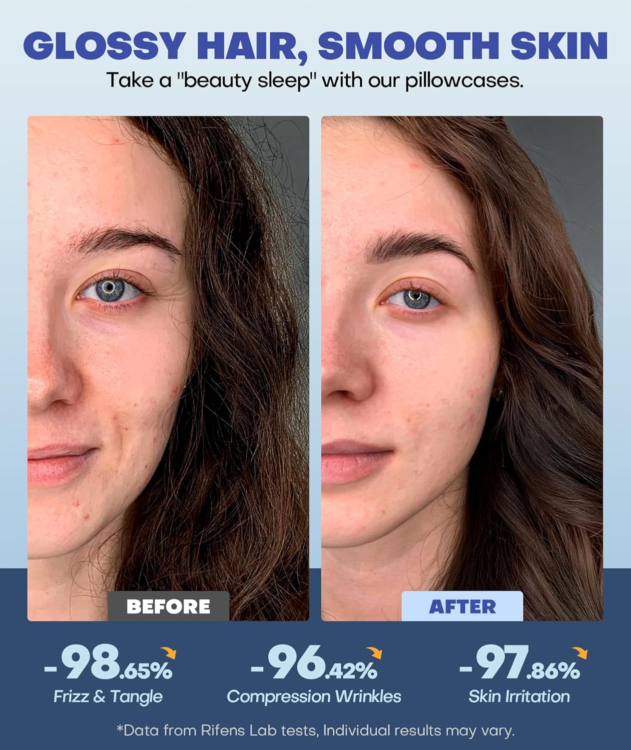 - ☃️𝐓𝐚𝐤𝐞 𝐀 "𝐁𝐞𝐚𝐮𝐭𝐲 𝐒𝐥𝐞𝐞𝐩" 𝐰𝐢𝐭𝐡 𝐎𝐮𝐫 𝐏𝐢𝐥𝐥𝐨𝐰𝐜𝐚𝐬𝐞𝐬! - Rifens beauty pillow cases have an exceptionally smooth feel that you won't find in other popular pillowcase materials such as cotton, linen, or flannel, reducing friction against skin and hair. This smooth texture helps reduce the appearance of wrinkles and calms redness, leaving skin as smooth as silk. When you lie on our super silky pillowcase, the natural oils from your hair are maintained, rather than being absorbed, leaving your hair nourished. Whether your hair is straight or voluminous, you'll experience no more bedhead or tangles!