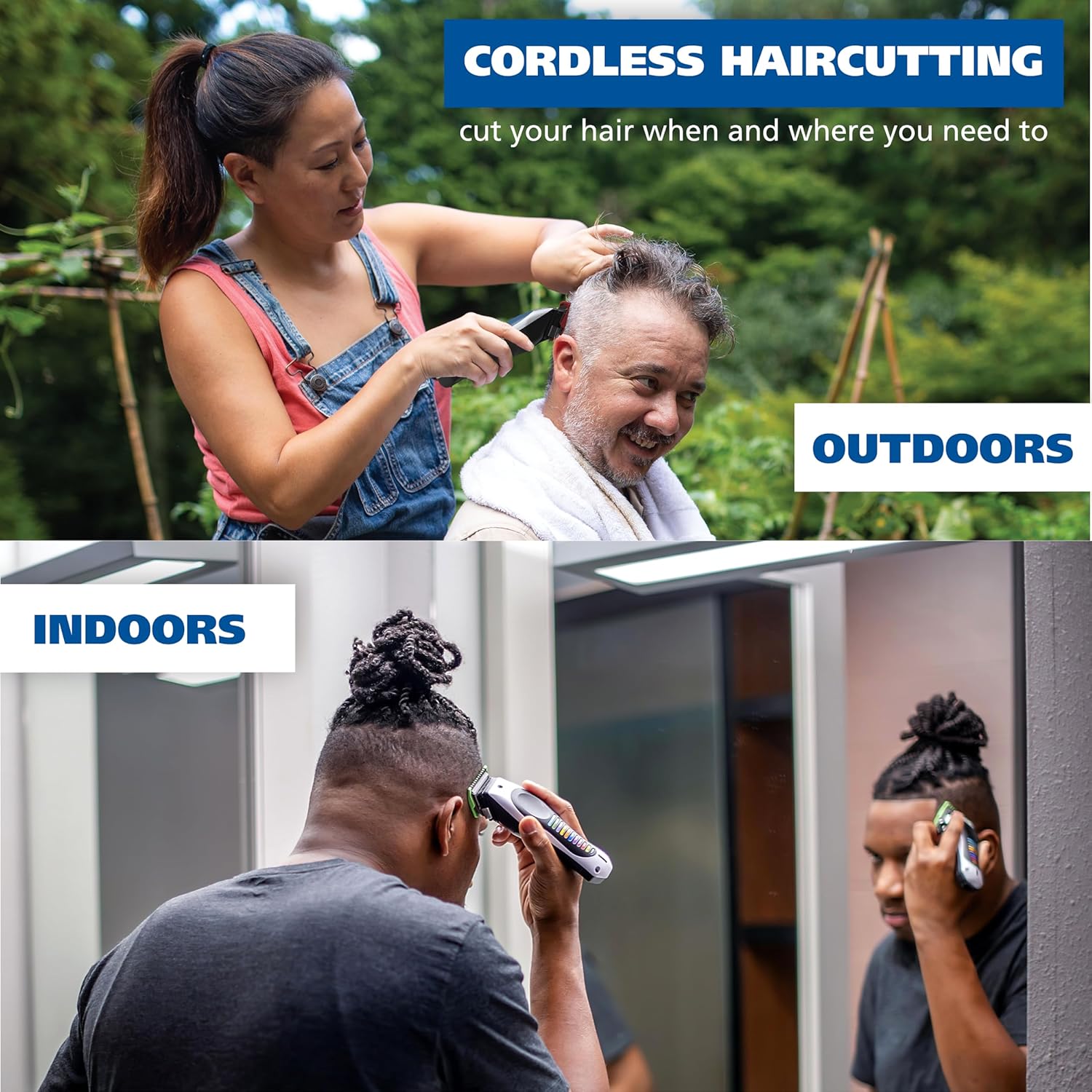 - Lithium-Ion Cordless Power - Enjoy up to 2 hours of runtime with this cordless hair clipper's powerful Lithium-Ion battery, featuring a convenient USB-A charger for quick and easy rechargingâperfect for at-home haircutting