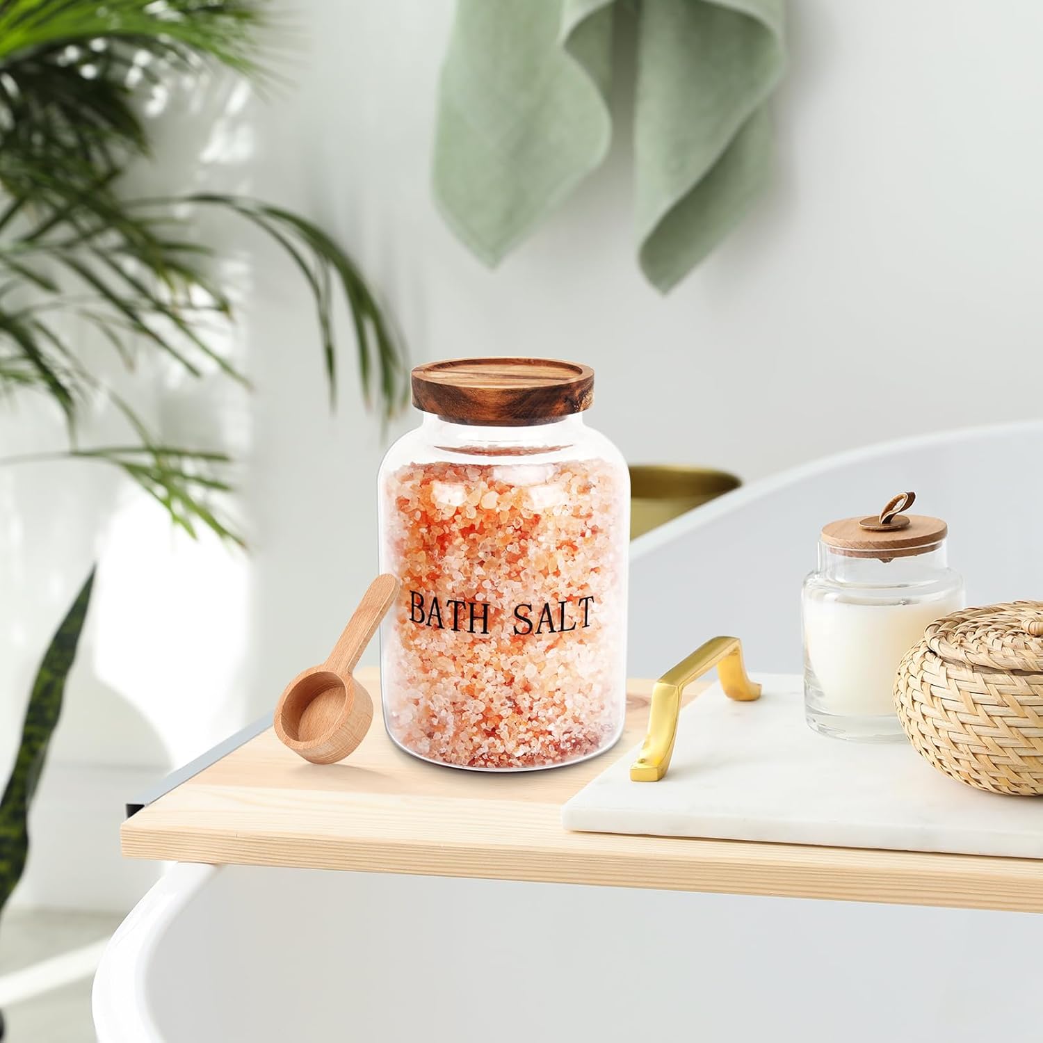 2Pcs 74 oz Glass Bath Salts Jar,Bath Salt Container with Wooden Lid and Scoop,Bathroom Organizers and Storage,for Bathroom Bath Decor,Home Decor,Bathtub Accessories for Women