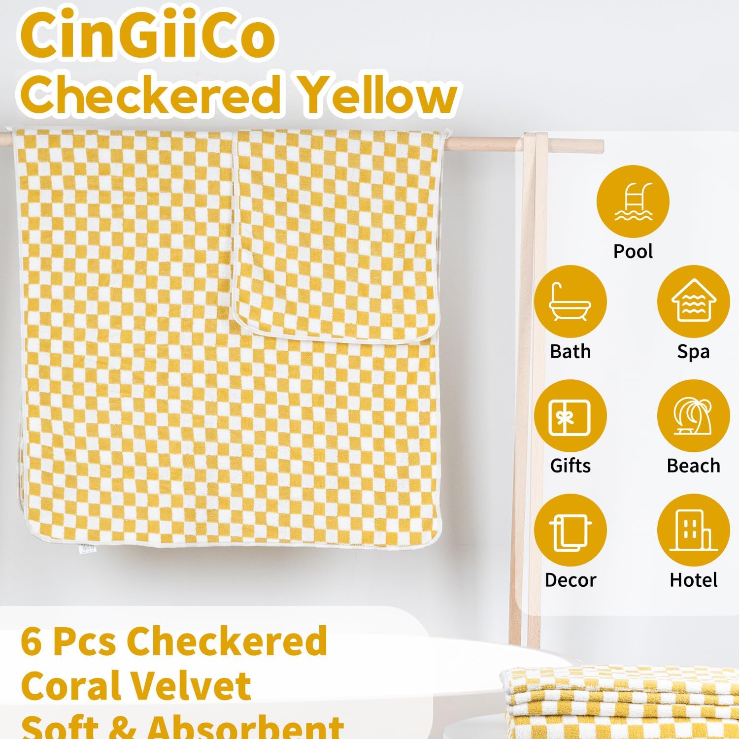 - CinGiiCo Bath Towel Set Includes: Checkered Bath Towels Large * 2 (55.12"*27.56"), Hand towels * 4 (29.52"*13.77"), Yellow. Family sharing fun set for life's needs. Soft & Absorbent & Quick-dry