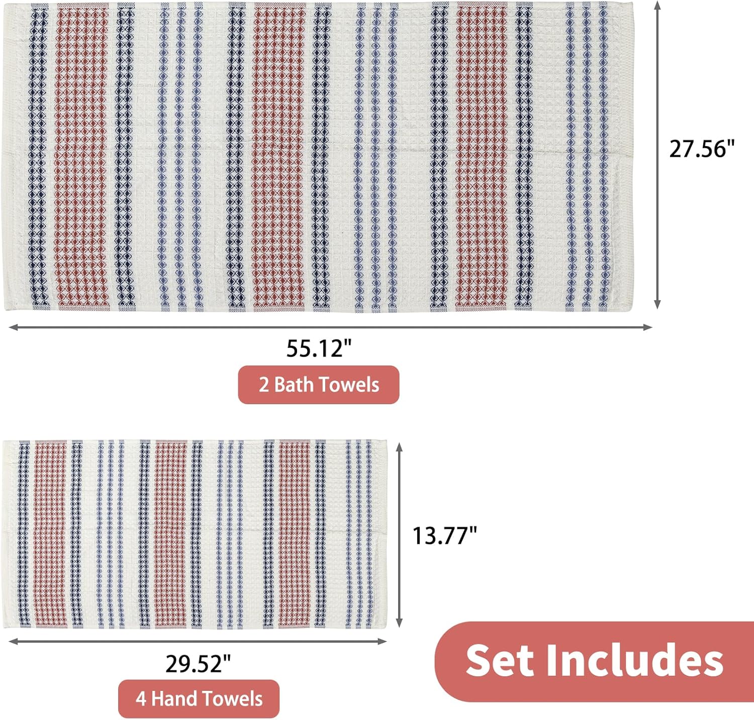 Bath Towels Set, Soft & Thick & Absorbent & Quick Dry, Hotel Towels for Bathroom Luxury, Beach Towel (Waffle Cafe, 2 Bath Towels+4 Hand Towels)