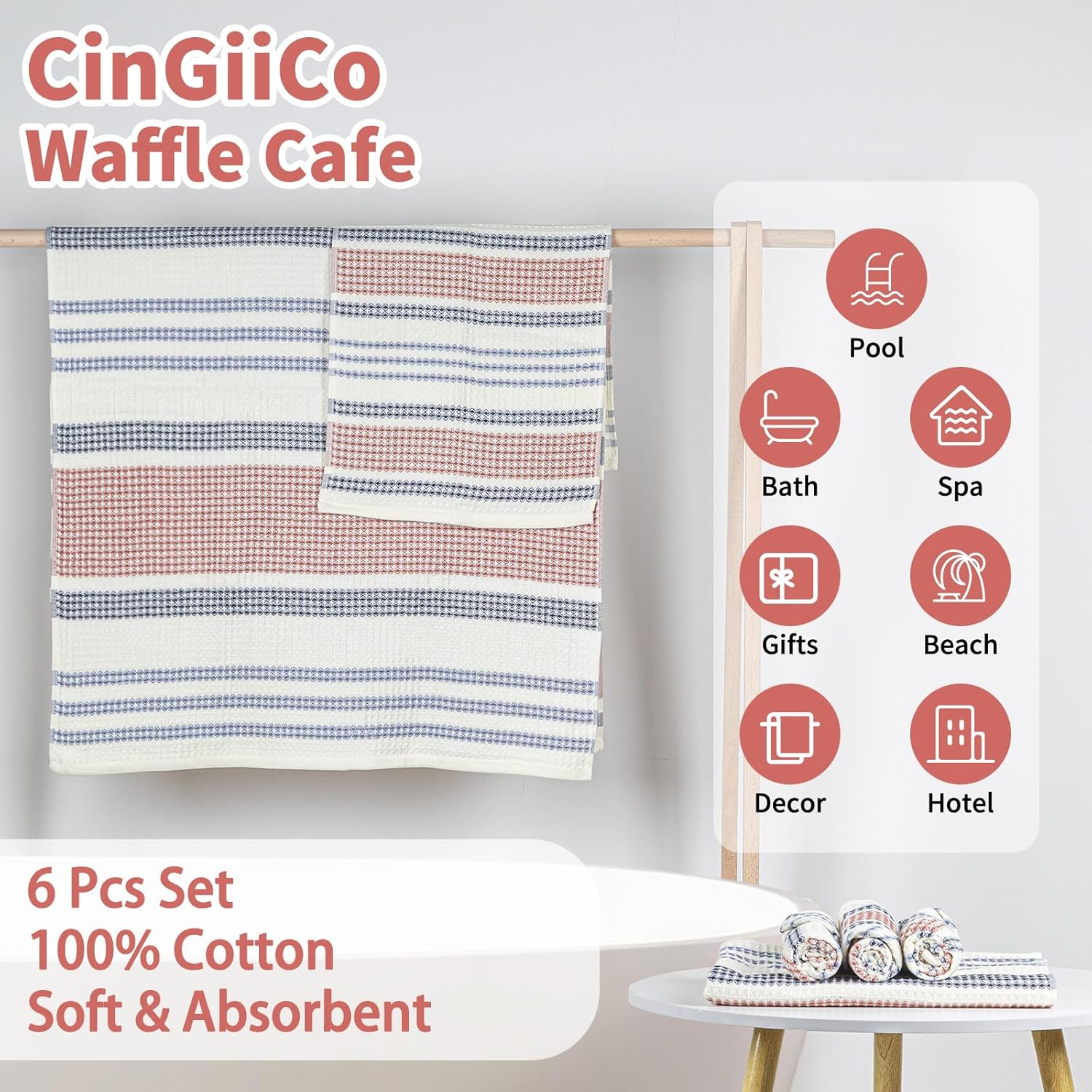 - CinGiiCo Bath Towels Set Includes:Cotton Waffle Cafe Bath Towel * 2 (55.12"*27.56"), Hand Towel * 4 (29.52"*13.77"). Family sharing set to meet the needs of life