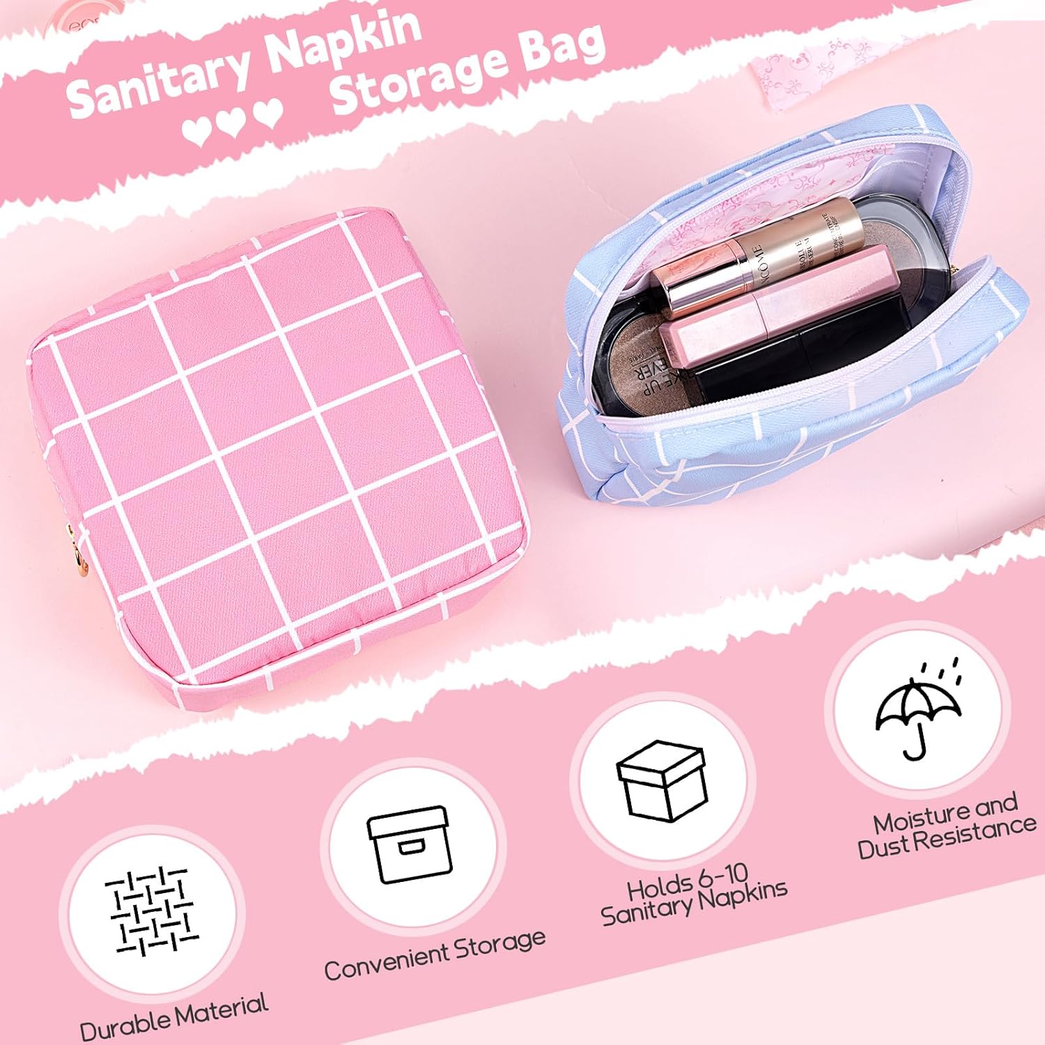 - đ ăPerfect Size for Period Essentialsă - This compact period bag (5.1 x 5.1 x 1.6 in / 13 x 13 x 4 cm) easily holds 6-10 standard pads (Size 1-5) or a combination of pads, liners, and tampons, making it an ideal sanitary napkin storage bag for your purse or backpack