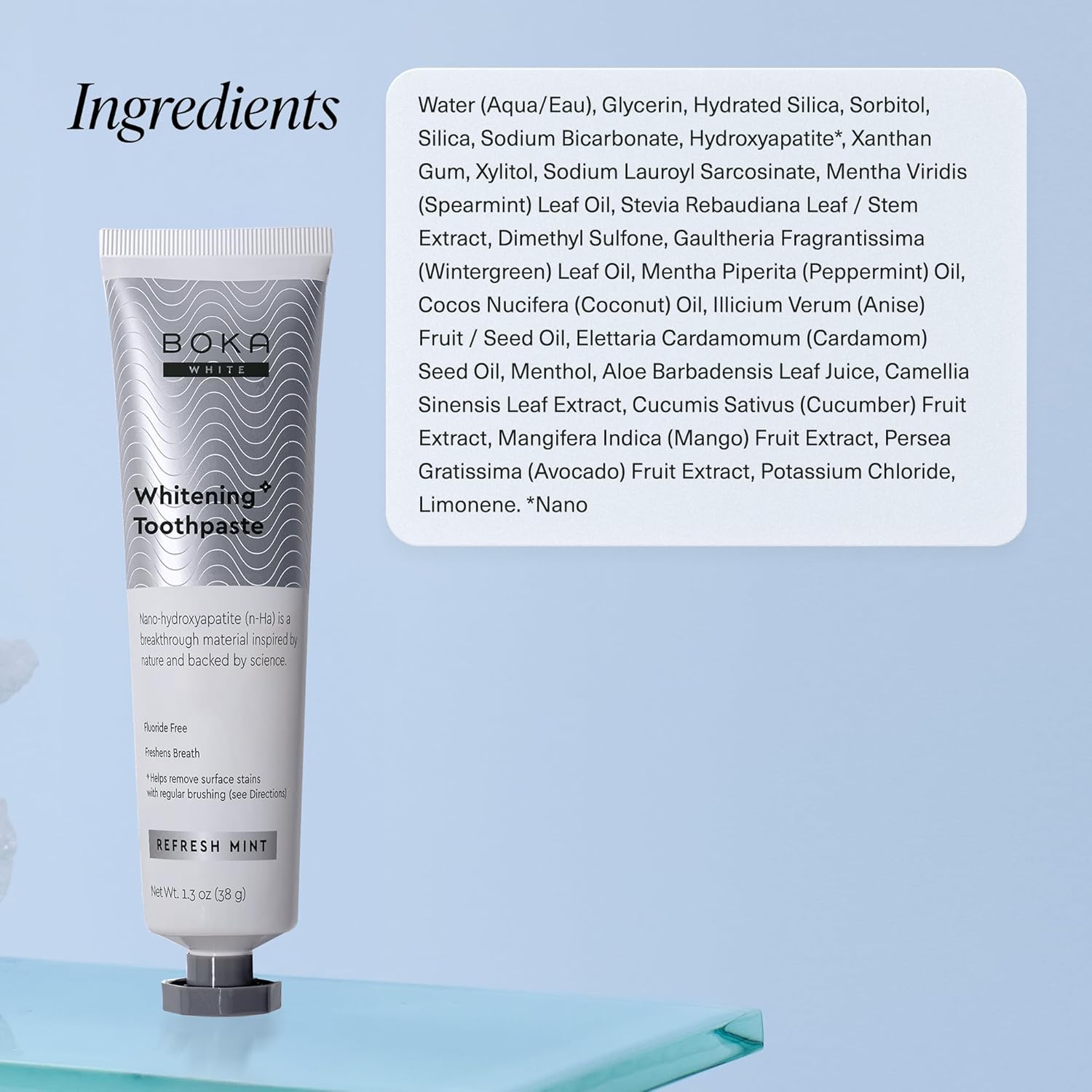 Boka Fluoride Free Toothpaste, Nano Hydroxyapatite Toothpaste, Appropriate for Sensitive Teeth, for Adult, Kids Oral Care - Whitening* Refresh Mint, 1.3 Fl Oz 2Pk US Manufactured
