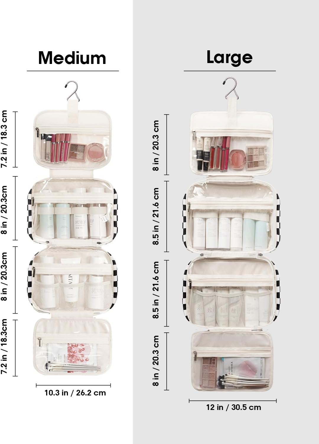 Narwey Travel Toiletry Bag for Women Large Hanging Makeup Bag Organizer Toiletries Bag for Full Size Essentials Accessories Cosmetics (Black Checkerboard (Large))