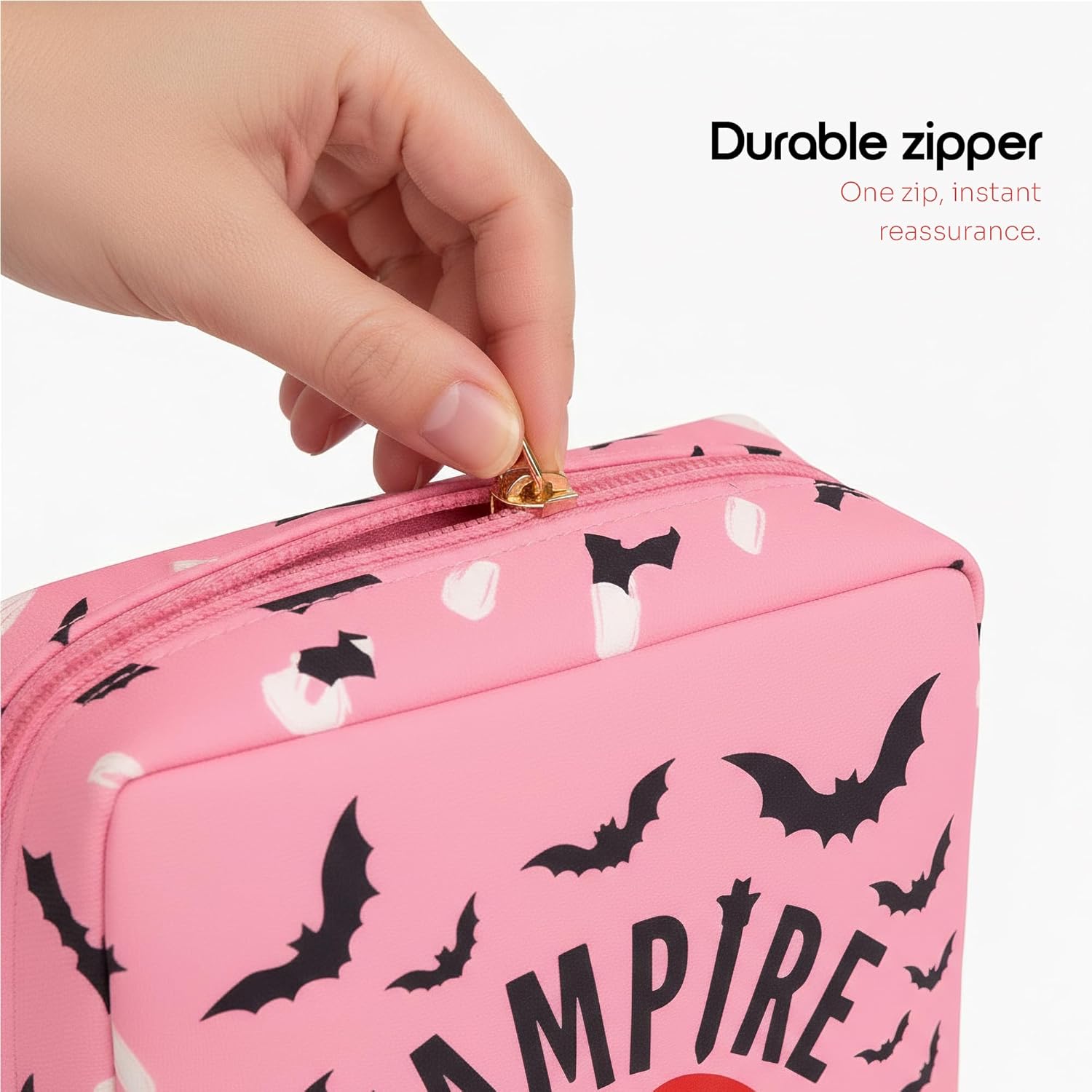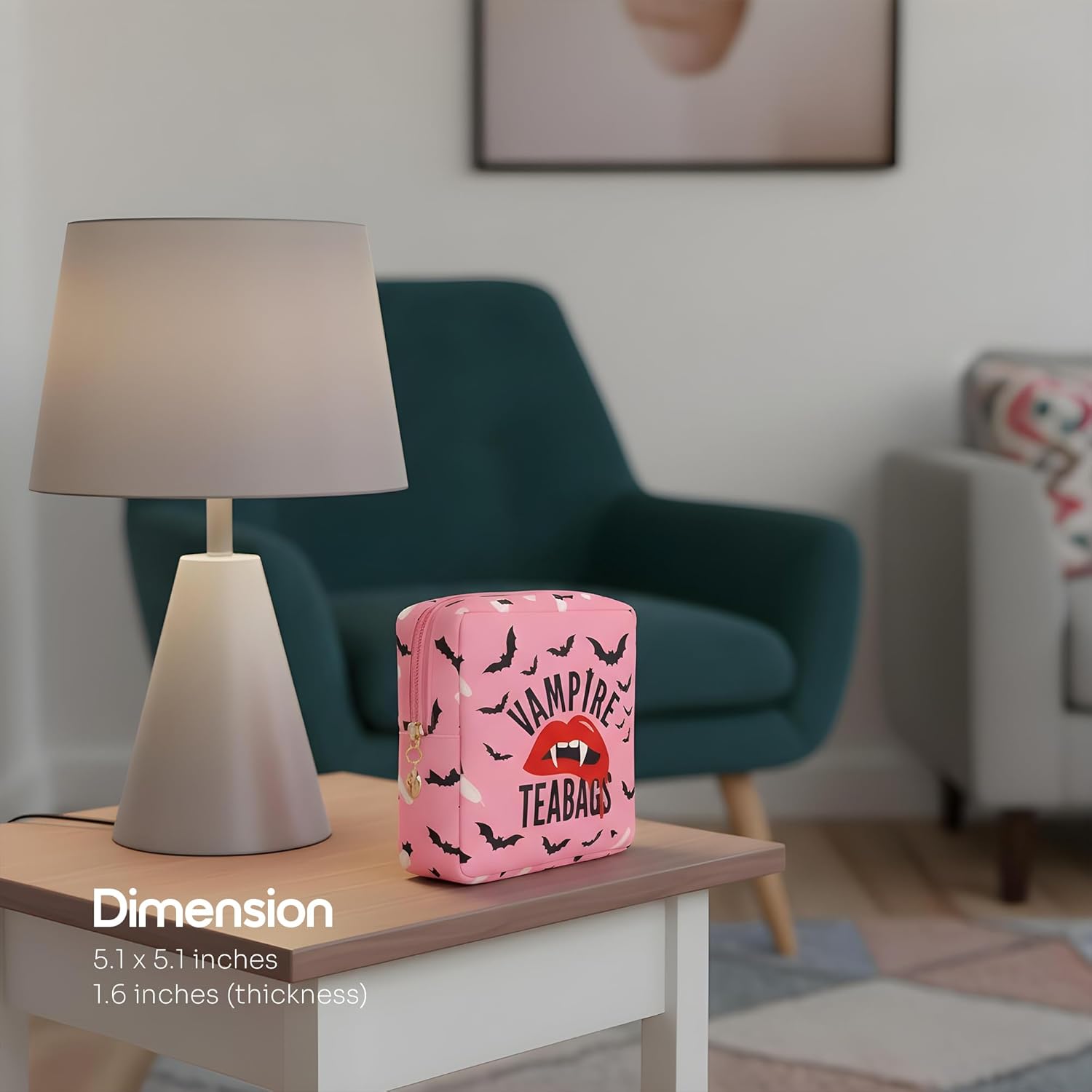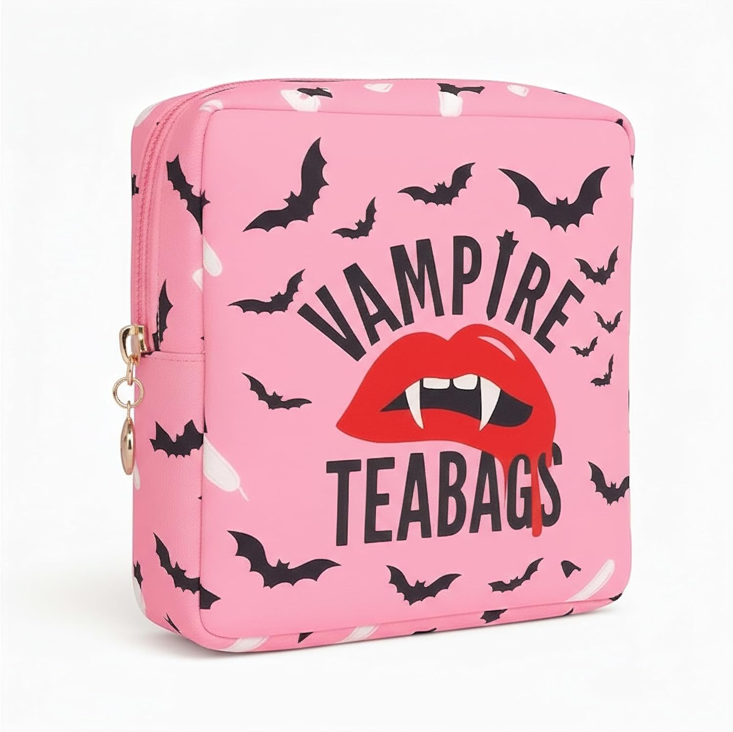 Primo Lines Period Bag for School – Compact Discreet Tampons & Pad Pouch with Waterproof Lining, Cute & Stylish Period Pouches for Teen Girls for School and Travel, First Period Kit (Vampire Teabags)