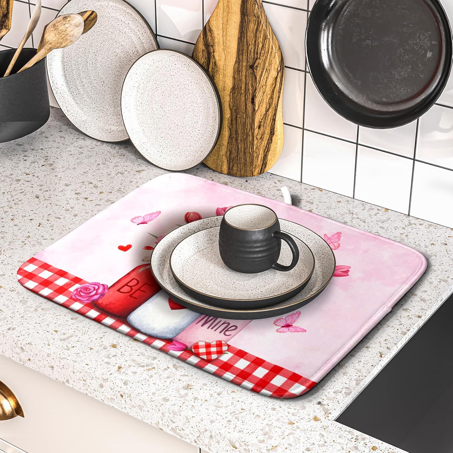 - 【Wide Usage】The dish drying mat designed with heart butterfly pattern, it is beautiful, soft, and durable. Not only a dish drying mat, cup mat, heat resistant mat, you can also use it as a kitchen countertop insulation mat. It is also a good choice to use it as a pet mat, picnic mat.