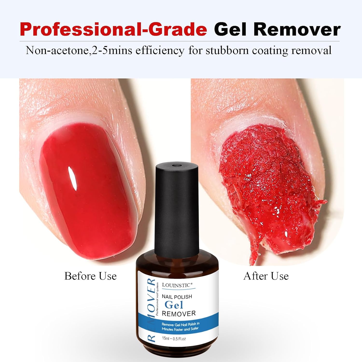 - 【Gentle, Acetone‑Free Formula】 This gel nail remover features a non‑irritating, acetone‑free formula that preserves the health of your natural nails. Remove gel polish remover for nails safely without dryness or damage.