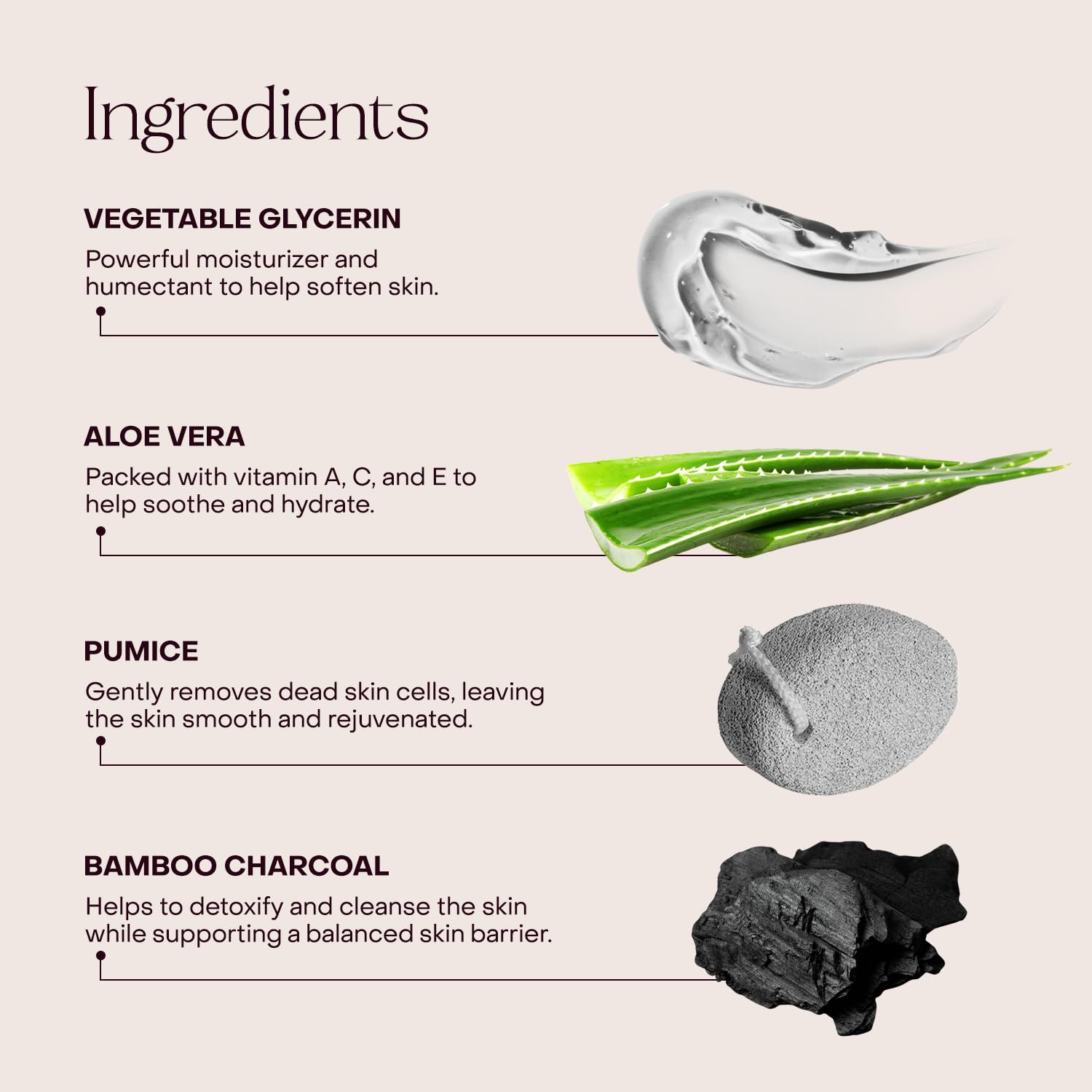 - EXFOLIATING BODY WASH CONCENTRATE: New formula contains bamboo charcoal particles and pumice to gently exfoliate skin and help reduce keratosis pilaris.