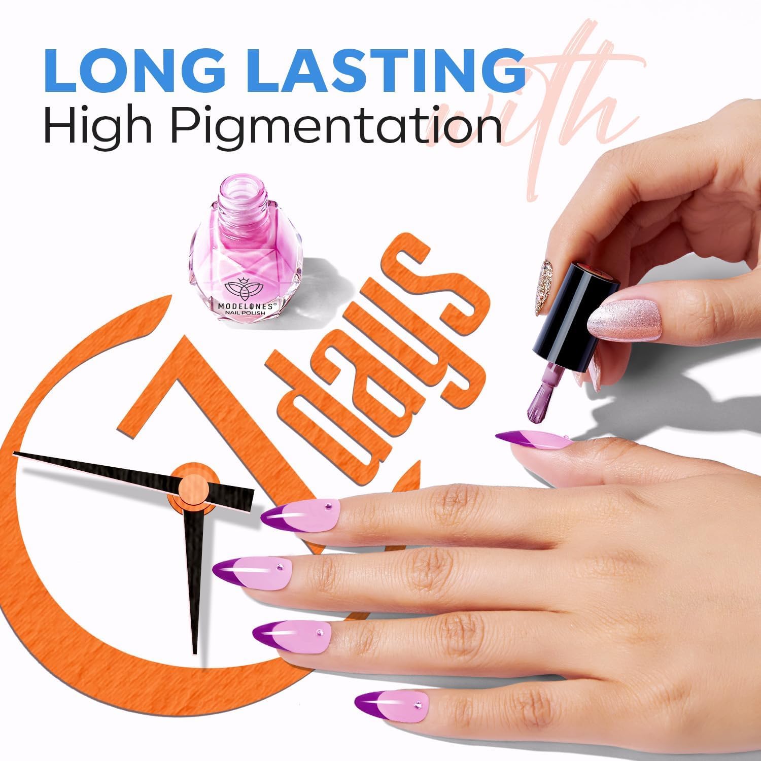 - Long-Lasting Durability: Say goodbye to frequent touch-ups! Modelones nail polish is crafted for longevity, ensuring a chip-resistant finish that lasts. Whether you're typing away at work, doing household chores, or enjoying outdoor activities, our durable formula keeps your nails looking immaculate for days