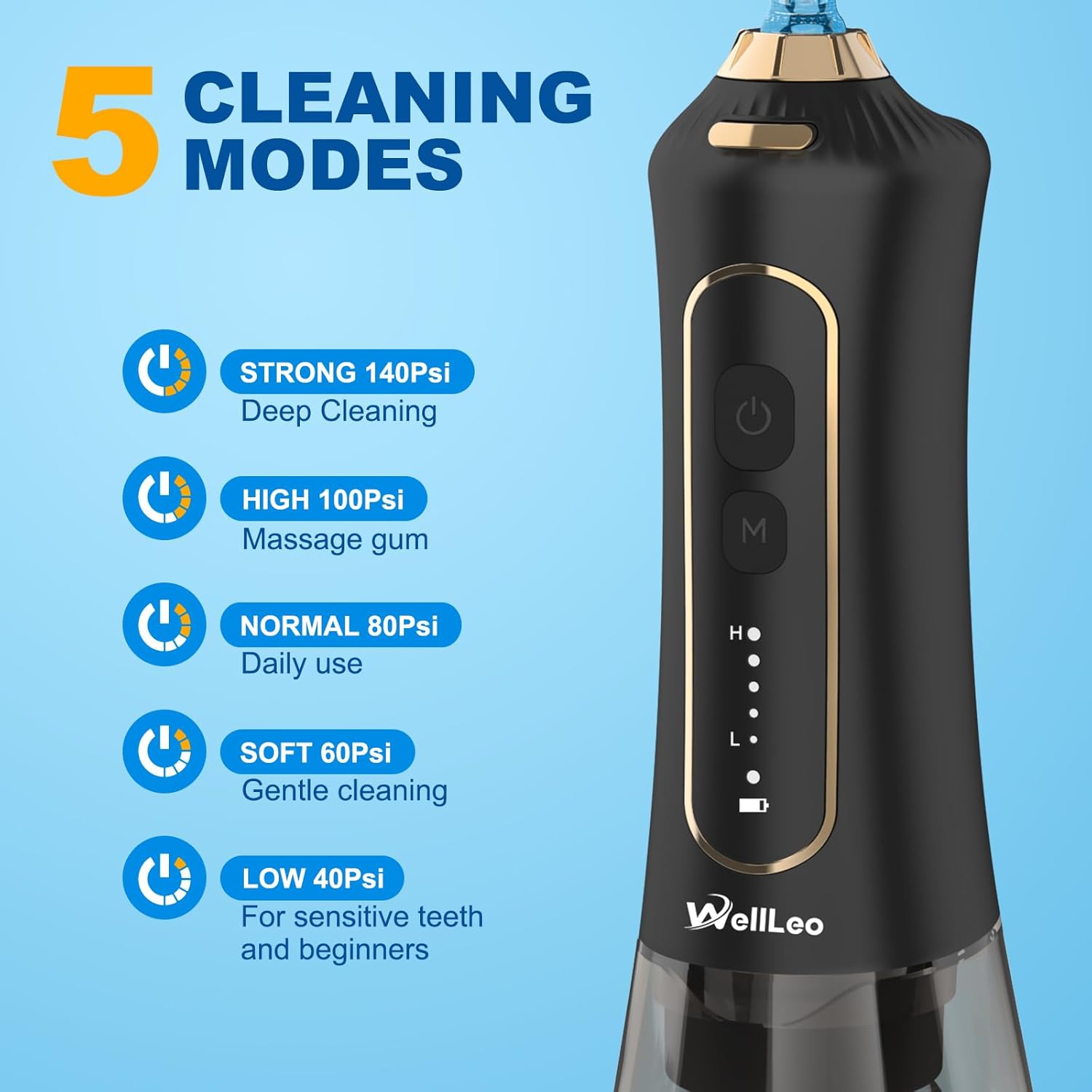 - Strong Pulsating Water Flow,Deep Cleaning-Dentist Recommended: The water flosser delivers 1300 pulses per minute to effectively remove stubborn debris and food particles from teeth and gums. With five adjustable cleaning modes, the tooth flosser caters to individual needs.Whether for first-time users, sensitive gums, or for those with braces, undergoing orthodontics, or needing deep periodontal cleaning, this is the ideal oral shower device endorsed by dentists