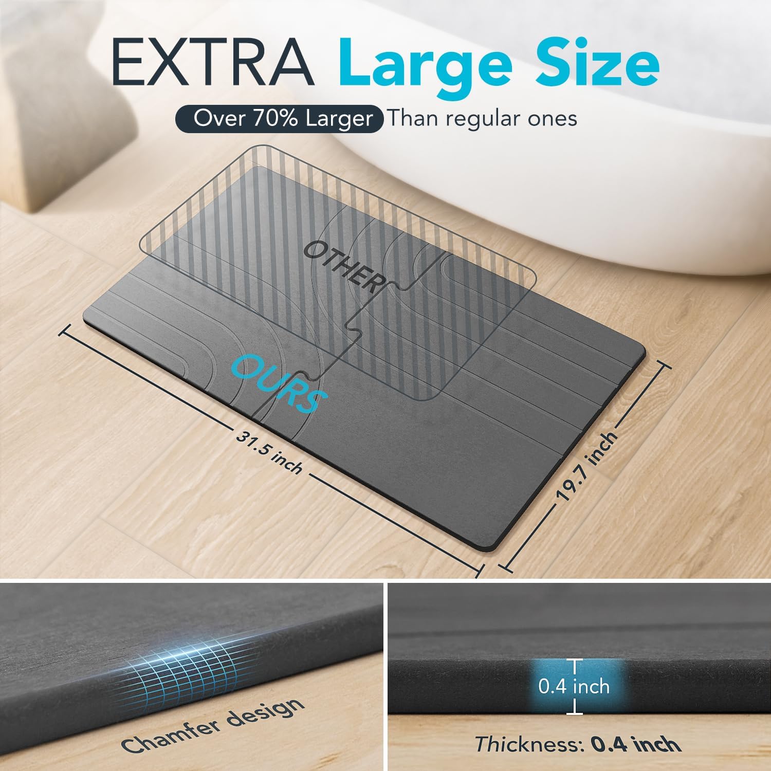 32 * 20 Large Stone Drying Bath Mat for Bathroom Diatomaceous Earth Bath Mat Quick Dry Non Slip Absorbent Bathroom Floor Mat Modernized Water Absorbing Diatomite Shower Bath Mat Grey