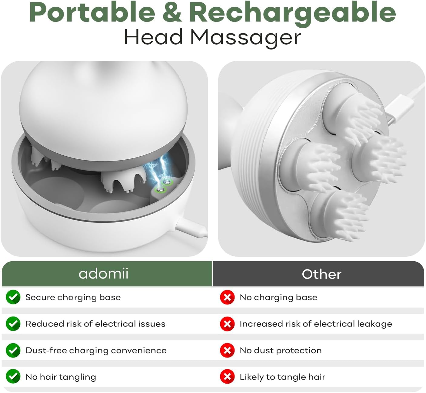 - Deep Scalp Massage & Stress Relief: Enjoy a soothing massage with adomii’s electric scalp massager featuring 84 kneading nodes, perfect to release stress and ease headaches—promoting healthy blood flow to the scalp with regular use.