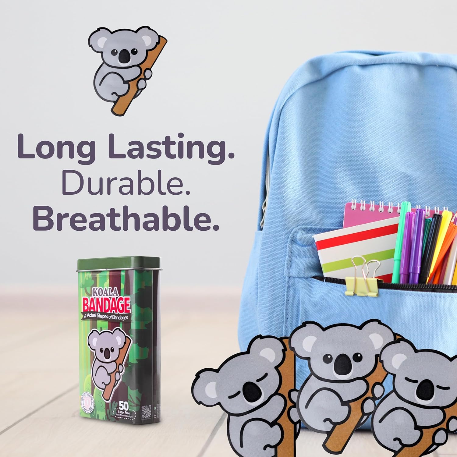 - 50 KOALA KIDS BANDAGES: Fun koala-shaped adhesive bandages pack helps protect cuts, scrapes, and minor wounds while making healing less stressful for children