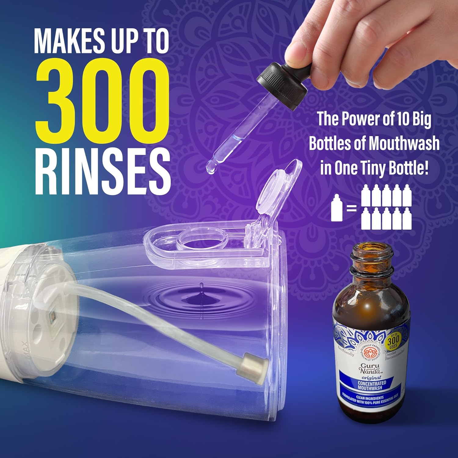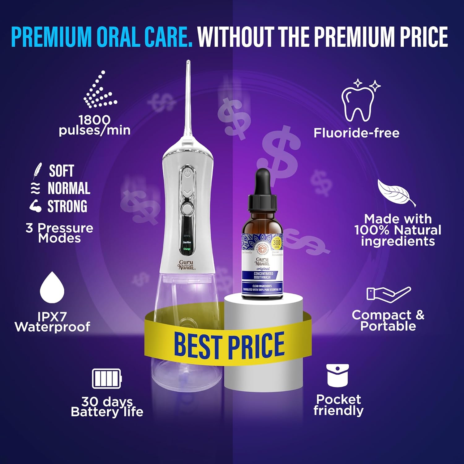 - COMPREHENSIVE ORAL CARE DUO: Experience a complete routine with GuruNanda's Advanced Water Flosser 2.0 with UV Mode combined with Concentrated Mouthwash Duo for refreshing & cleansing benefitsâgiving you a brighter smile & fresher breath every day.