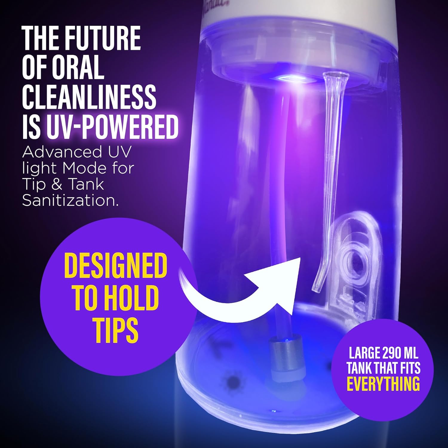 - UV SANITIZATION & SMART TIMER: GuruNandaâs advanced flosser features UV-C light to sanitize both tank & tips, along with a 90-second timer for a precise, hygienic cleanâperfect for maintaining a fresh, daily oral care routine.