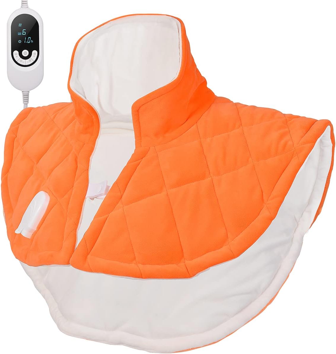 Heating Pad for Neck and Shoulders and Back, Weighted Electric Heat Pad for Pain Relief, Dry/Moist Heat Large Heated Wrap, 6 Heat Settings, 6 Auto-Off, Gifts for Women Men Mom Dad (Orange, XL)