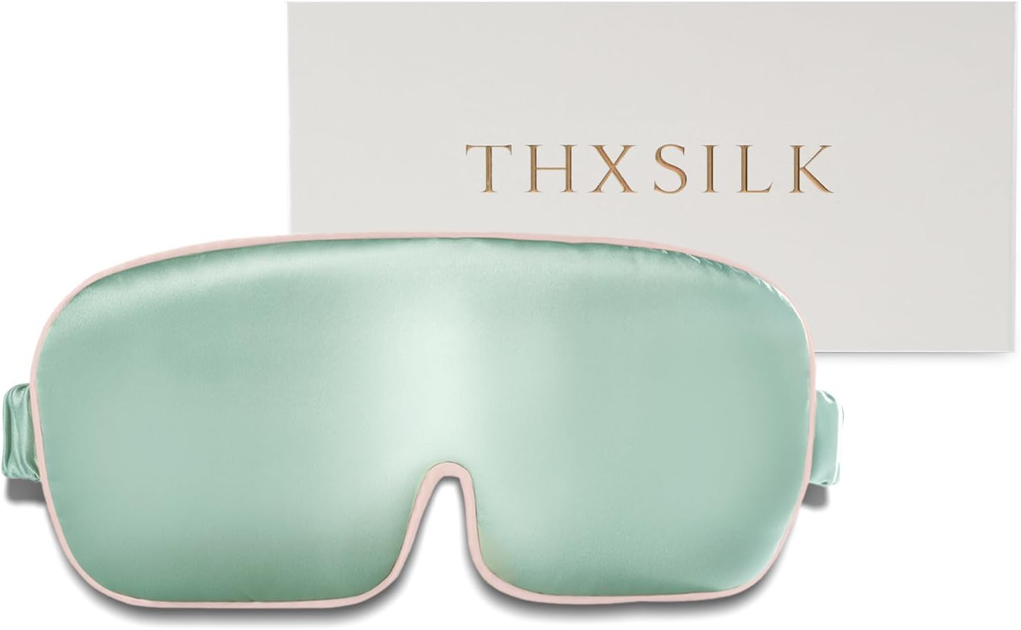 THXSILK 100% Mulberry Silk Sleep Mask, 6A Grade 25 Momme Eye Mask for Sleeping, Color-Blocking Blindfold, Soft Silk Eye Cover for Women, Men, Travel, Nap, Airplane(4×9inches, Mint Green)