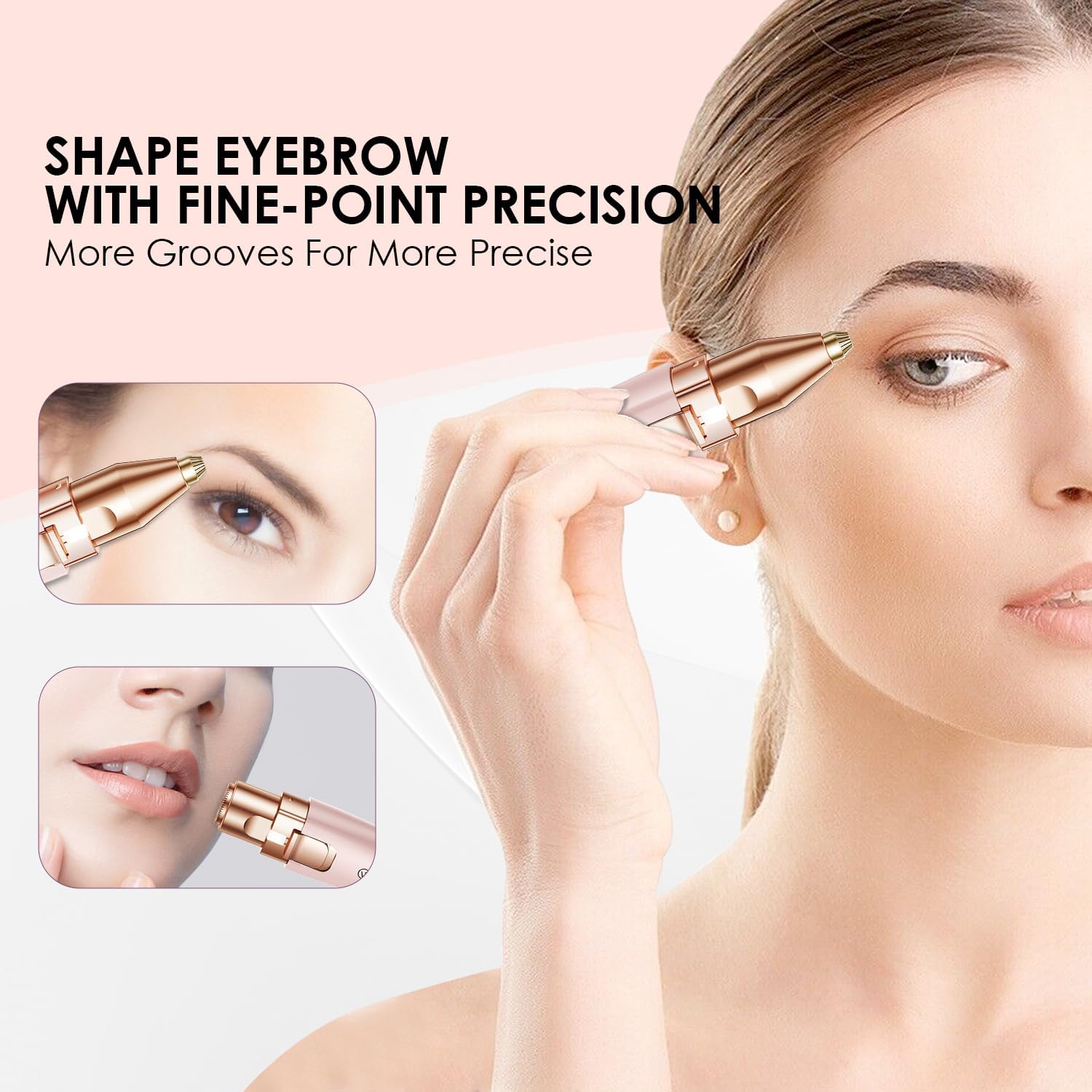 VG VOGCREST Eyebrow Facial Trimmer: 2 in1 Rechargeable Facial Hair Removal and Eyebrow Shaver - Face Lips Body Painless Facial Razor with Built-in LED Light (Pink)