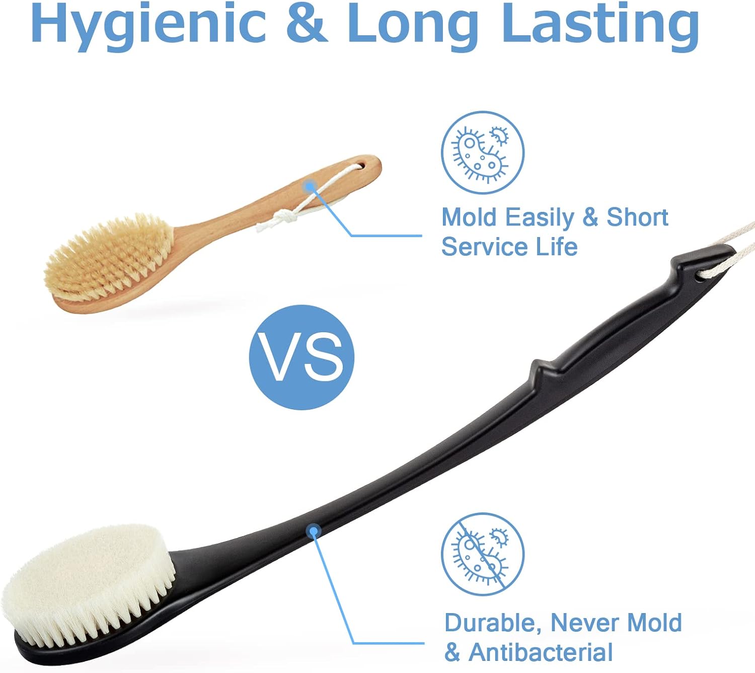 Body Back Scrubber – 17'' Long Handle Shower Brush, Durable Exfoliator for Dry & Wet Use, Deep Cleansing & Gentle Exfoliation for Smooth Skin – for Men, Women & Elderly (Black)