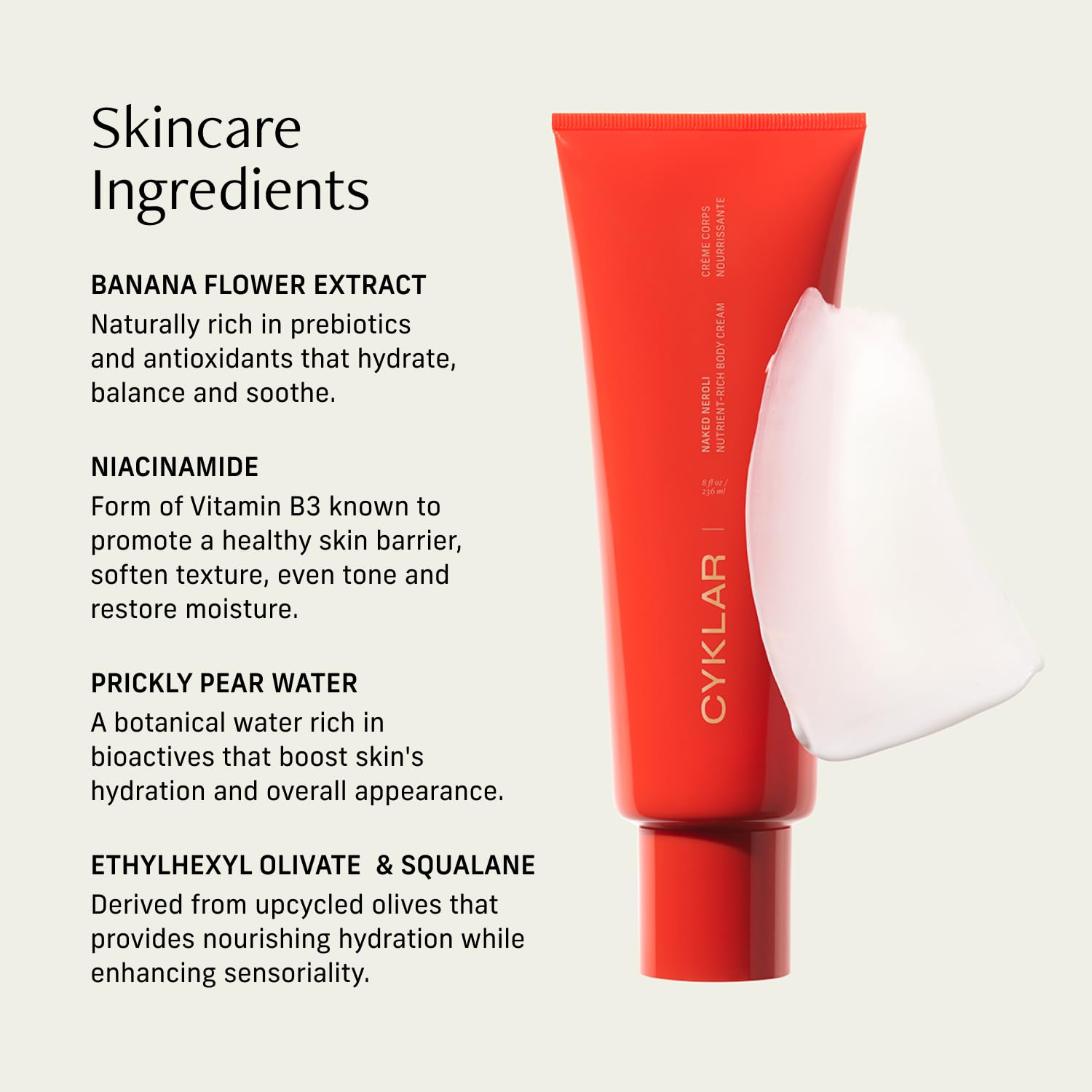 CYKLAR Nutrient Rich Body Cream. Naked Neroli Nourishing Moisturizer with Niacinamide and Banana Flower Extract. Deep Hydration, Thick Body Lotion, Dry Skin Cream for Women and Men, 8 Fl Oz