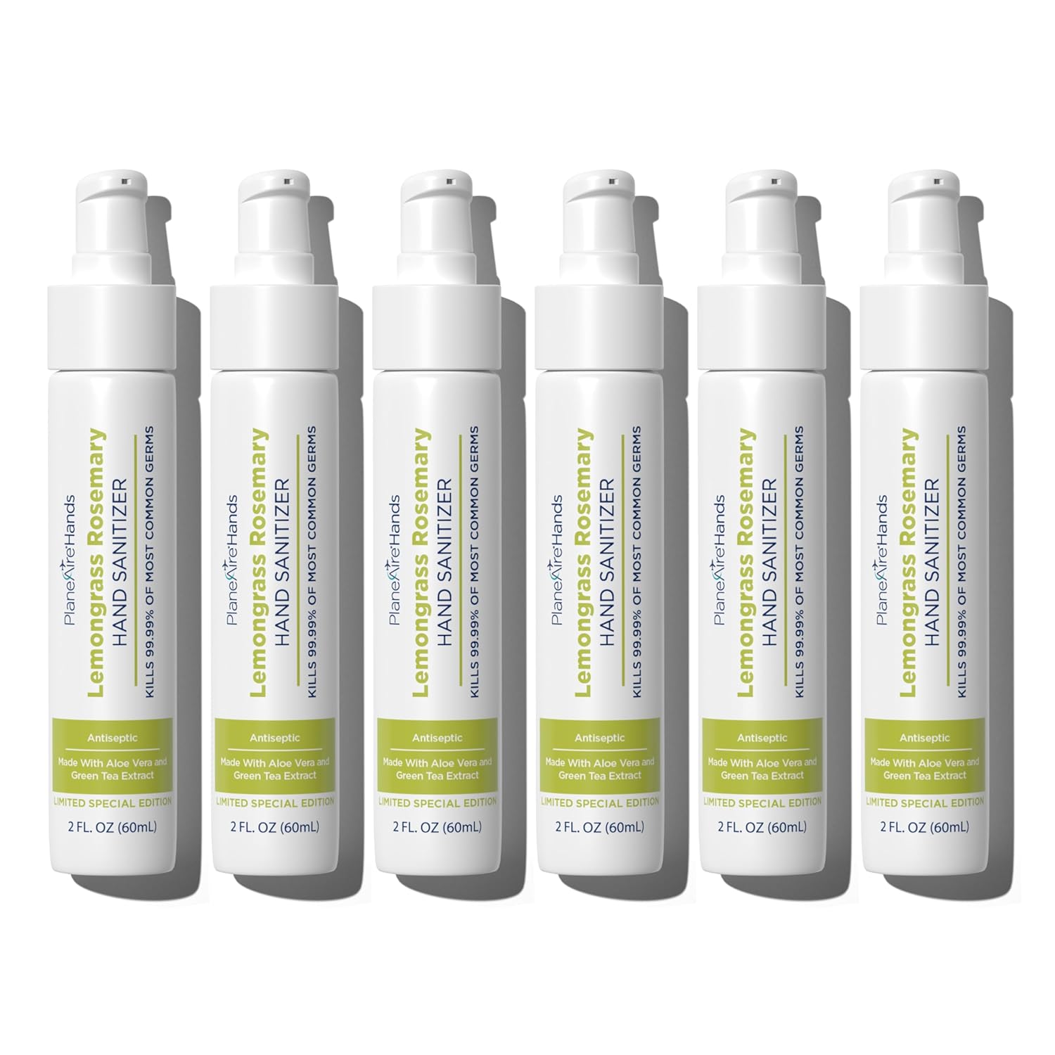 Lemongrass Rosemary Lotion Hand Sanitizer | Travel Size | Cleanse & Moisturize | Made with Aloe Vera & Essential Oils | Rich in Vitamin E | Lemongrass Essential Oil | Green Tea Extract | 6-Pack