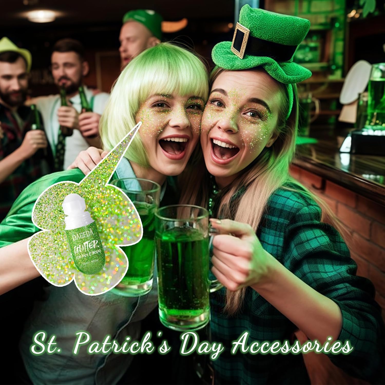 DAGEDA Green Body Glitter Gel, Roll-on Face Glitter for St Patricks Day Festival Rave Accessories, Holographic Hair Glitter Gel,Body Shimmer Mardi Gras Makeup for Rave Party