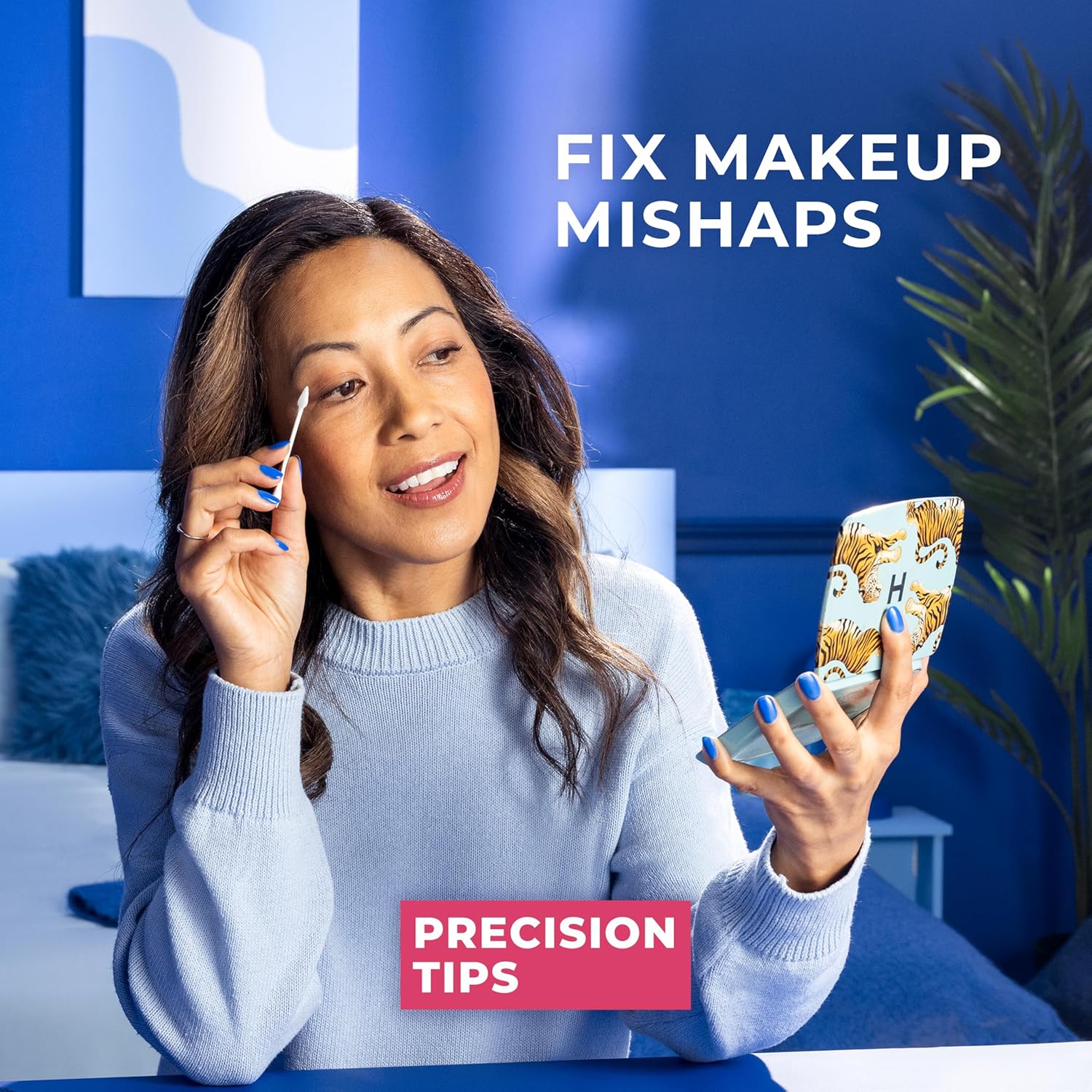 - Q-tips Precision Tips Cotton Swabs, your trusty beauty companions, designed with fine, pointed tips for extra accuracy whether you need to fix mascara mishaps or nail those touch-ups