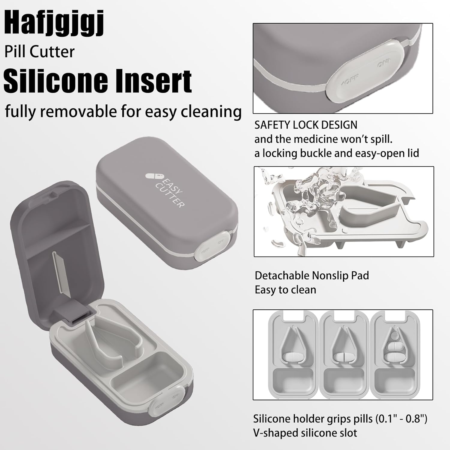 Pill Cutter Splitter for Small or Large Pills with Safety Lock - Accurate and Easy Travel-Friendly Design for Daily Use (Gray)