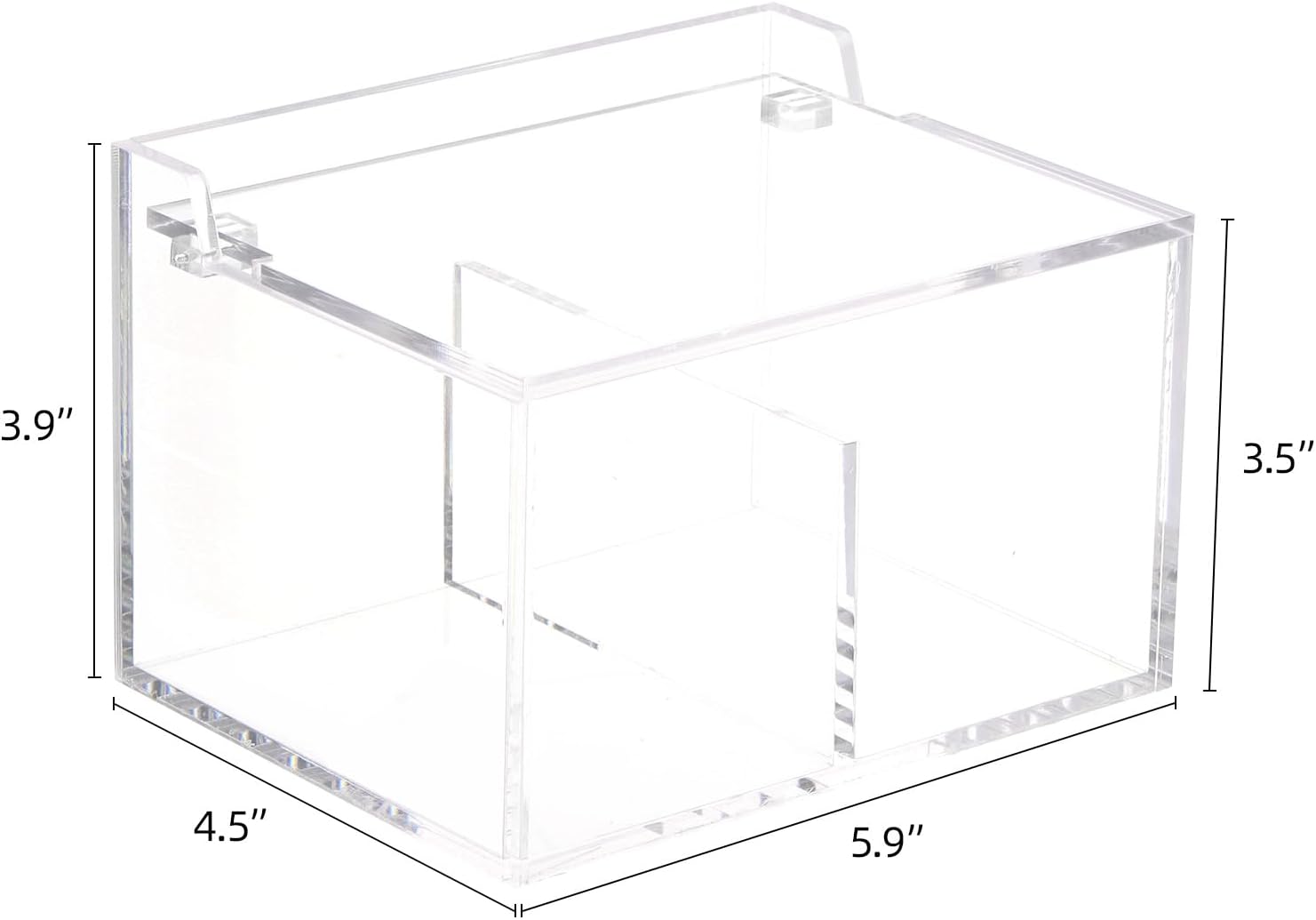 Tbestmax 2-Grid Qtip Holder, 4mm Thickness Cotton Ball Swab Organizer Acrylic Rectangle Bathroom Canister Makeup Pad Cosmetic Storage - Clear