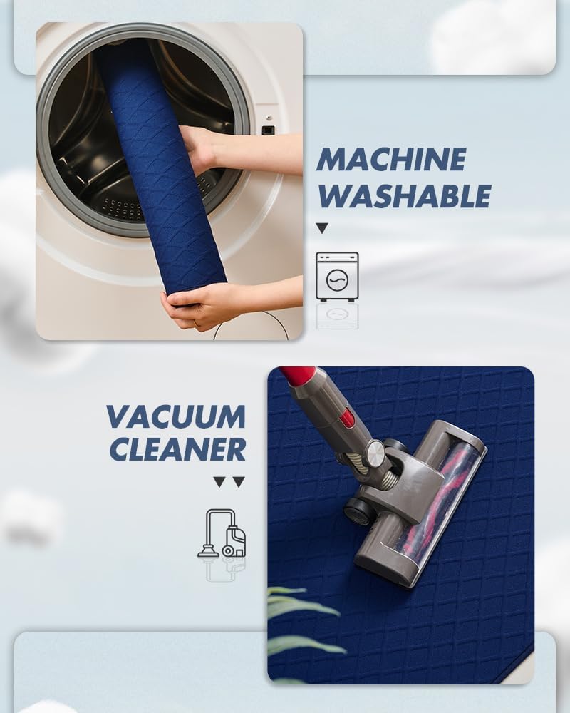 - 【Quick Absorbing】 Bath mats are made of a soft new -tech textile surface layer. It can quickly absorb the water on your toes' when leaving the bathtub or shower. It's amazing that it can stay dry in seconds, dry faster than traditional bathroom mats. Make sure it's always dry when you use it, just like a new bathroom mat and rug