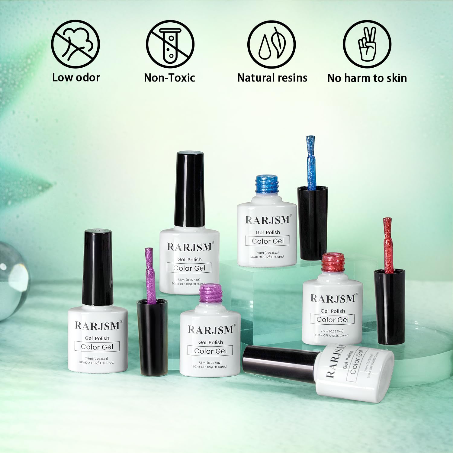 RARJSM Neon Diamond Cat Eye Gel Nail Polish Set 6 Colors Velvet Silver Glitter Bright Green Lake Blue Red Rose Purple Gel Polish with Magnet Stick UV LED Curing Requires Soak Off Home Salon Diy