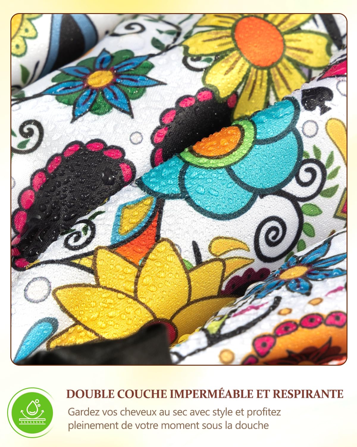 mikimini Shower Cap for Women Reusable Waterproof, Extra Large Hair Cap for Shower with Double Layers, Stylish Vibrant Designed Shower Bonnet for Long Thick Hair, 2 Pieces