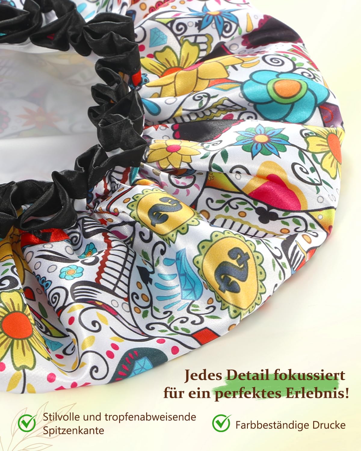 • A Splash of Fun for Showers: Add some flair to your daily routine with our vibrant sugar skull shower cap. Bursting with playful, colorful designs, it’s here to bring a little joy to every wash. Keep your hair dry while showing off your personality—because who says a shower cap can’t be fun? Go ahead, give your bath time a pop of character—you’ve earned it!