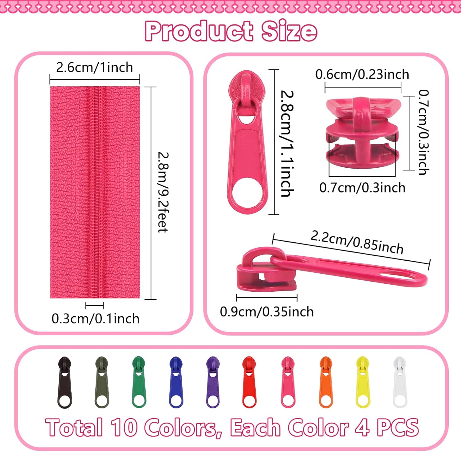 - Adequate to Meet Your Needs: you will receive about 31 yards of nylon coil zipper rolls in 10 different colors, per color a roll and 3.1 yards per roll, come with 40 zipper sliders and 4 per color, enough amount and colors can meet your need and replacements