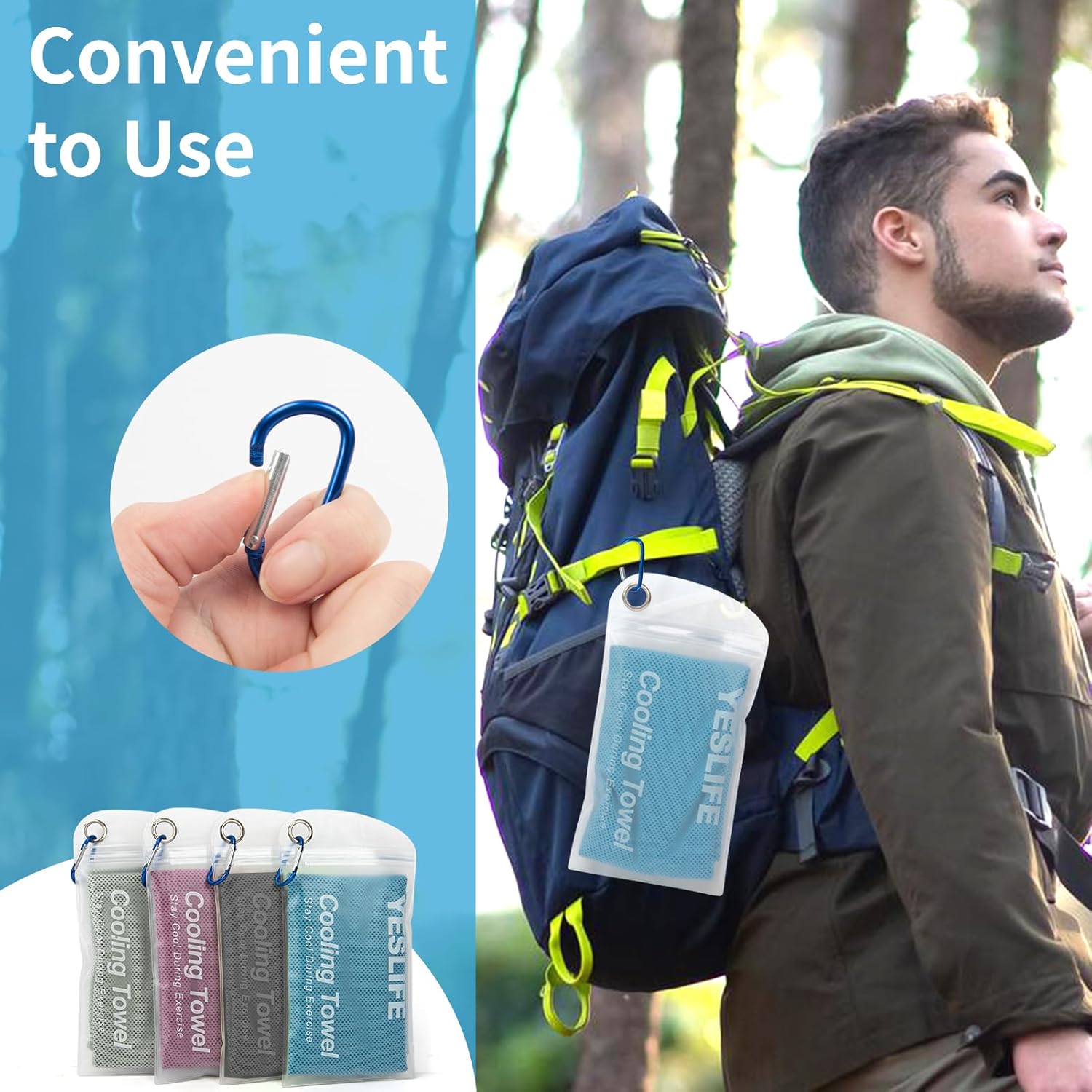 YESLIFE 4 Pack Cooling Towel 40"x12", Gym Towels for Men and Women, Soft Breathable Workout Towels for Yoga, Running, Sport, & More (Blue, Grey, Purple, Black)