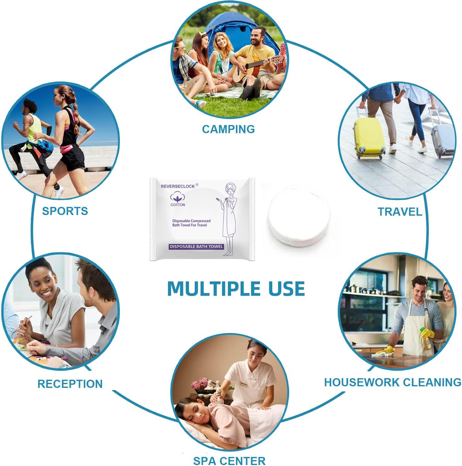 - Widely Use: Our compressed towels are suitable for travel, camping, swimming, bathrooms, offices, business trips, beaches, hotels, gyms, spas, and anywhere you can think of. Itâs convenient & clean enough to use when you need to towel and protect you.