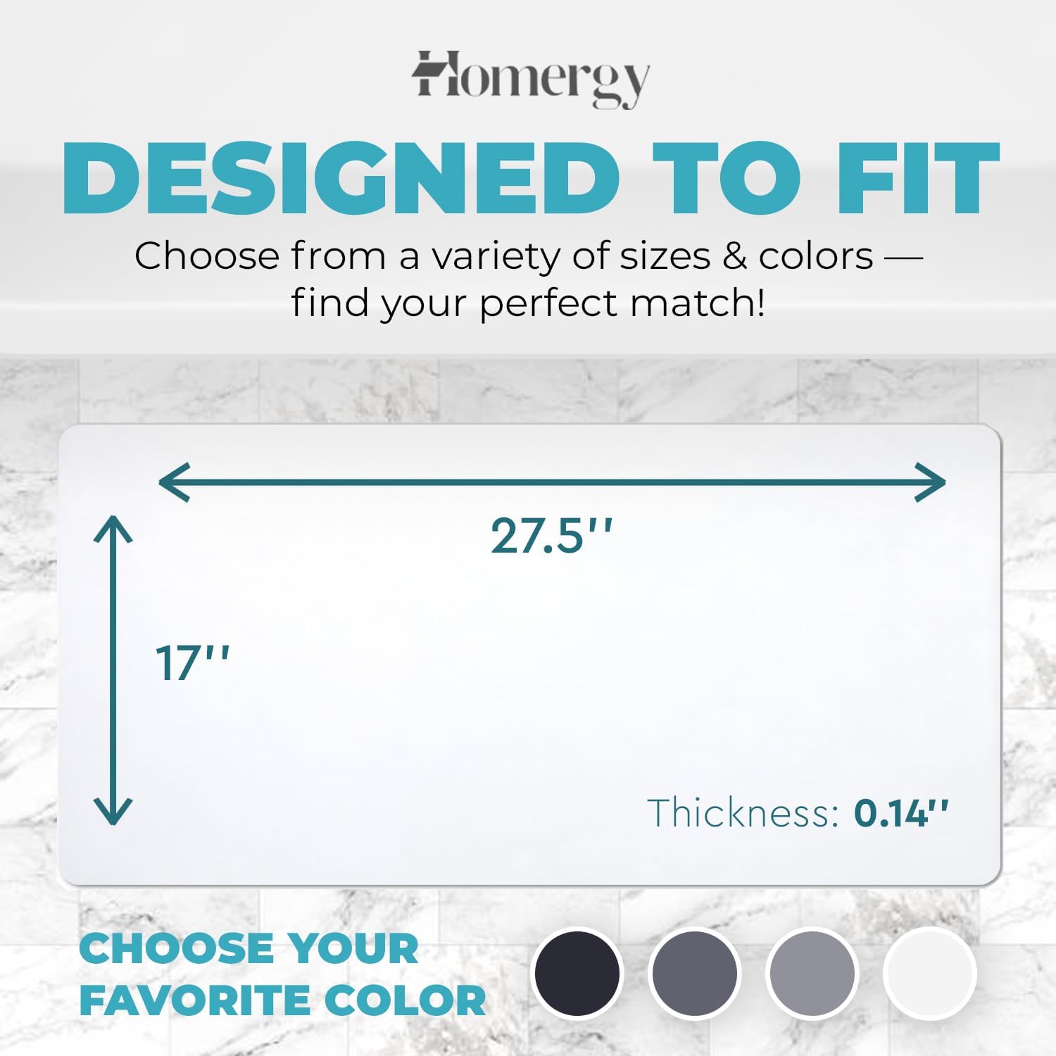 Homergy Bath Mat – Super‑Absorbent & Quick‑Dry with Non‑Slip Rubber Backing, Machine Washable & Odor Resistant – 18x28 in, White