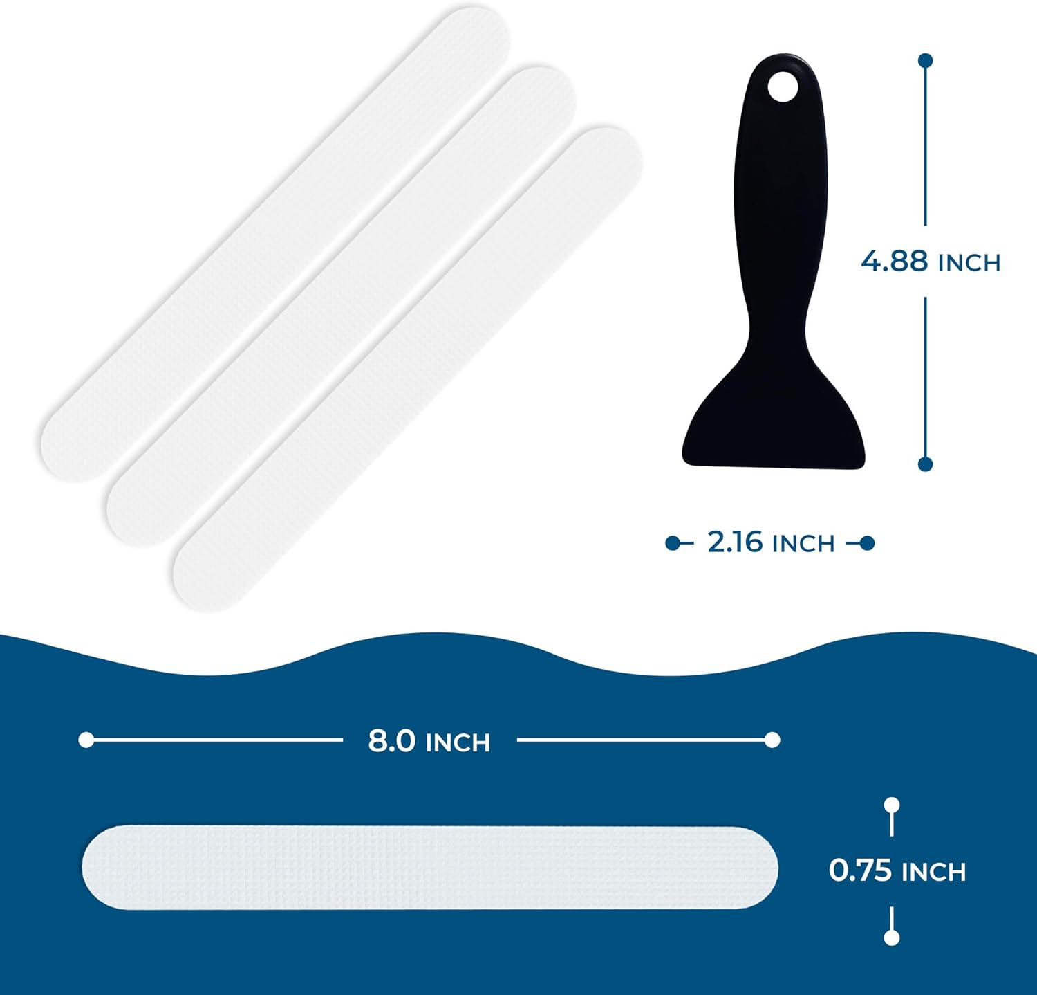 - Versatile & Comprehensive Coverage - With 24 white strips (0.75âx8â) included in each package, you can cover most of your bathtub or shower surface, drastically reducing the risk of slips. Additionally, these versatile strips are perfect for use on stairs and boats, providing extra safety wherever needed