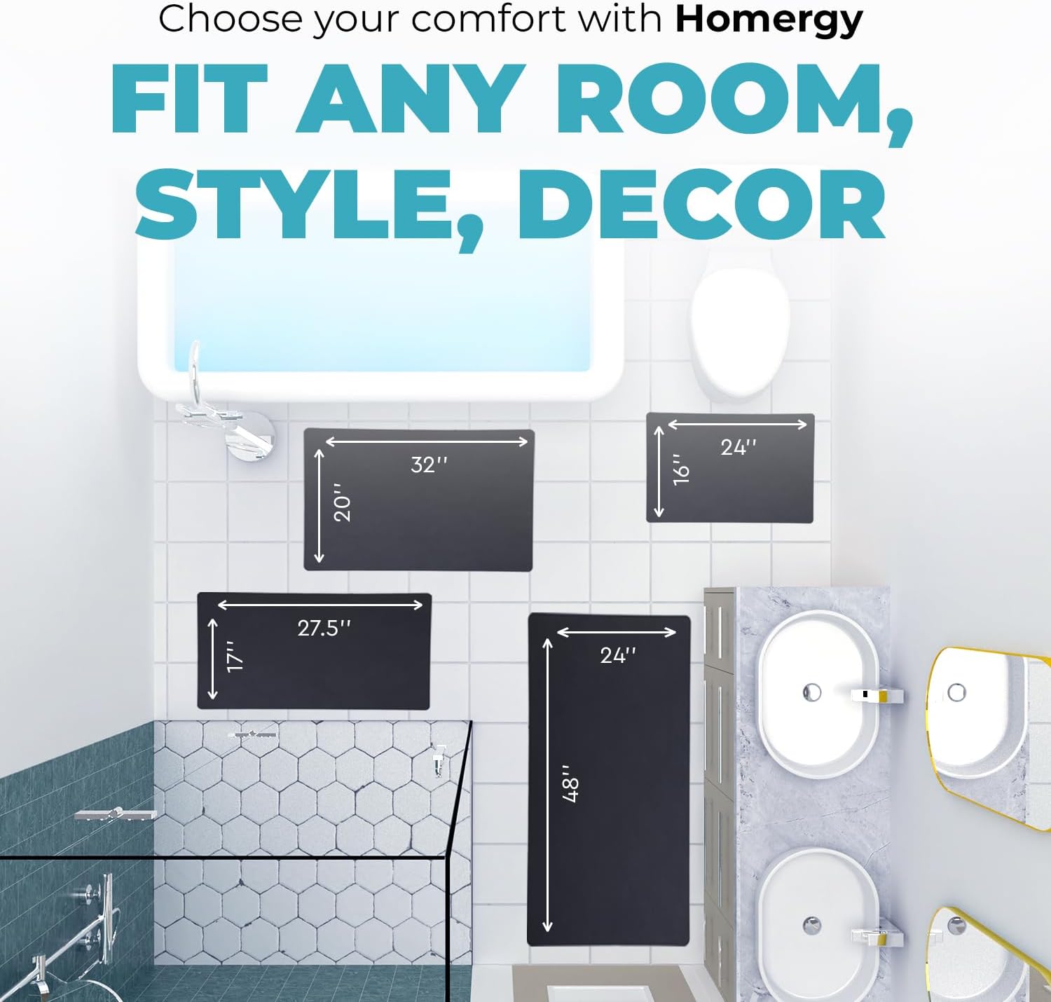 Homergy Bath Mat – Super‑Absorbent & Quick‑Dry with Non‑Slip Rubber Backing, Machine Washable & Odor Resistant – 16×24 in, Black