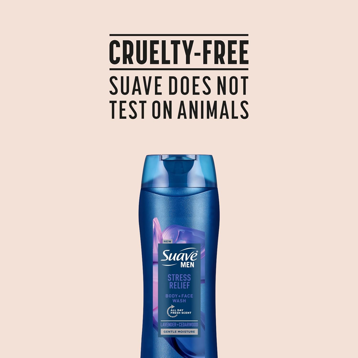 Suave Men’s Stress Relief Body + Face Wash, Gentle Moisture with Lavender & Cedarwood All Day Fresh Scent, 18 oz, 6 Pack