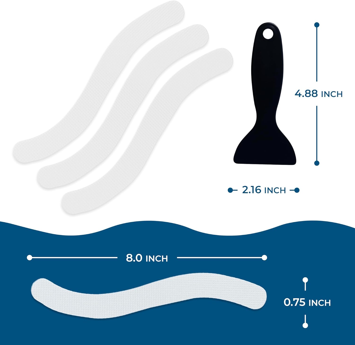 - Versatile & Comprehensive Coverage - With 24 strips (0.75âx8â) included in each package, you can cover most of your bathtub or shower surface, drastically reducing the risk of slips. Additionally, these versatile strips are perfect for use on stairs and boats, providing extra safety wherever needed