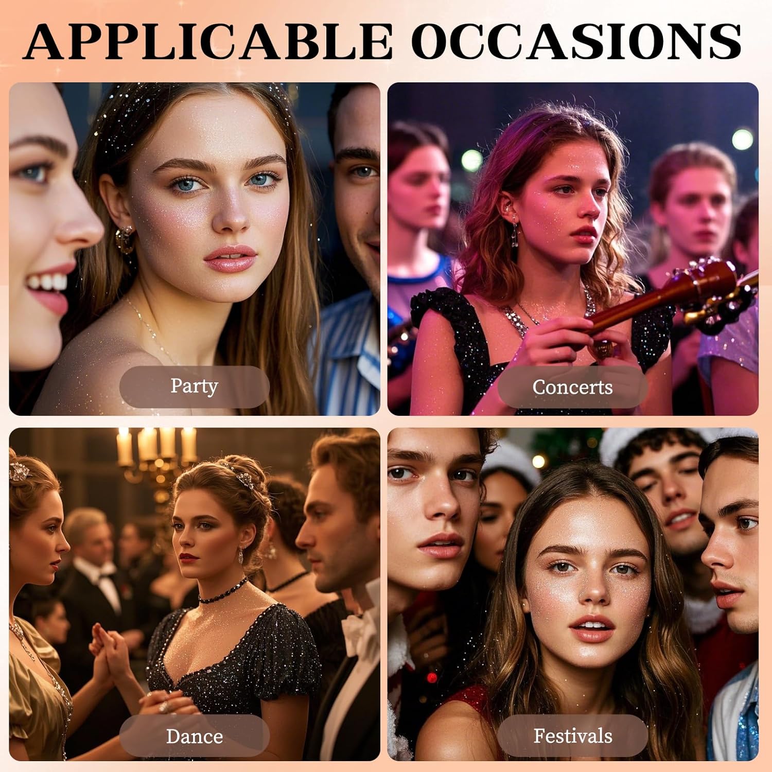 - Multi-Purpose Glitter Spray: Our body glitter spray is made of glitter particles, delivering a charming shimmer effect. You can spray it on your body, hair, face, skin, and even clothes. It will make you the center of attention under the lights at parties or nightclubs